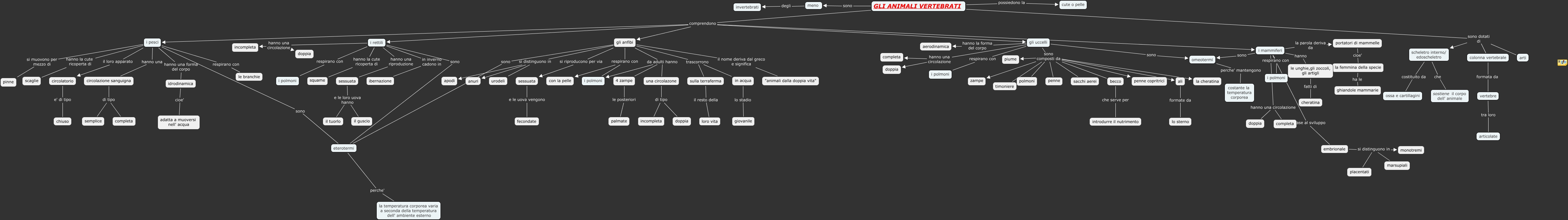 Questa Cmap, creata con IHMC CmapTools, contiene informazioni relative a: Senza titolo 1, gli uccelli sono composti da ali, embrionale si distinguono in marsupiali, i rettili hanno una riproduzione sessuata, le unghie,gli zoccoli, gli artigli fatti di cheratina, i rettili hanno una circolazione incompleta, sulla terraferma il resto della loro vita, gli anfibi respirano con i polmoni, i pesci sono eterotermi, gli anfibi respirano con con la pelle, GLI ANIMALI VERTEBRATI comprendono i pesci, GLI ANIMALI VERTEBRATI sono meno, gli anfibi si riproducono per via sessuata, i mammiferi la parola deriva da portatori di mammelle, GLI ANIMALI VERTEBRATI comprendono i mammiferi, embrionale si distinguono in placentati, 4 zampe le posteriori palmate, gli anfibi il nome deriva dal greco e significa "animali dalla doppia vita", omeotermi perche' mantengono costante la temperatura corporea, i mammiferi hanno una circolazione completa, gli uccelli respirano con i polmoni
