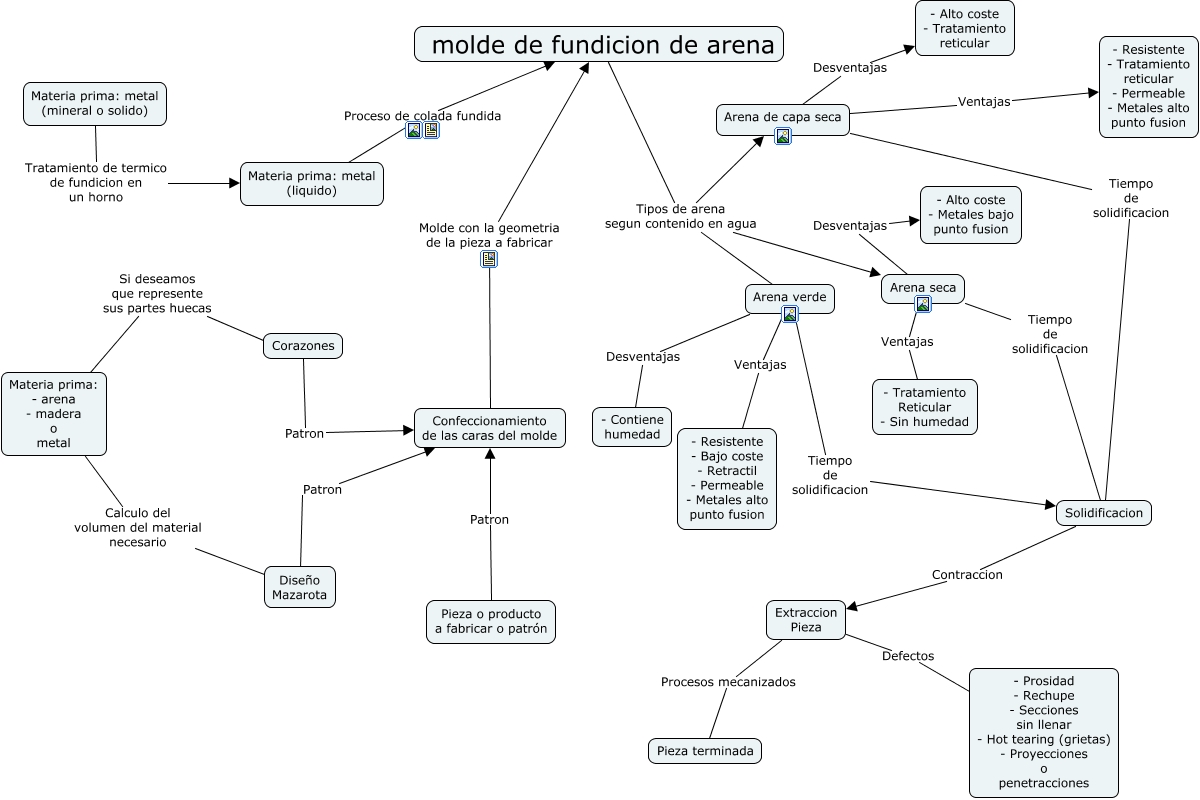 Este Cmap, tiene información relacionada con: Mapa conceptual de molde de fundicion de arena