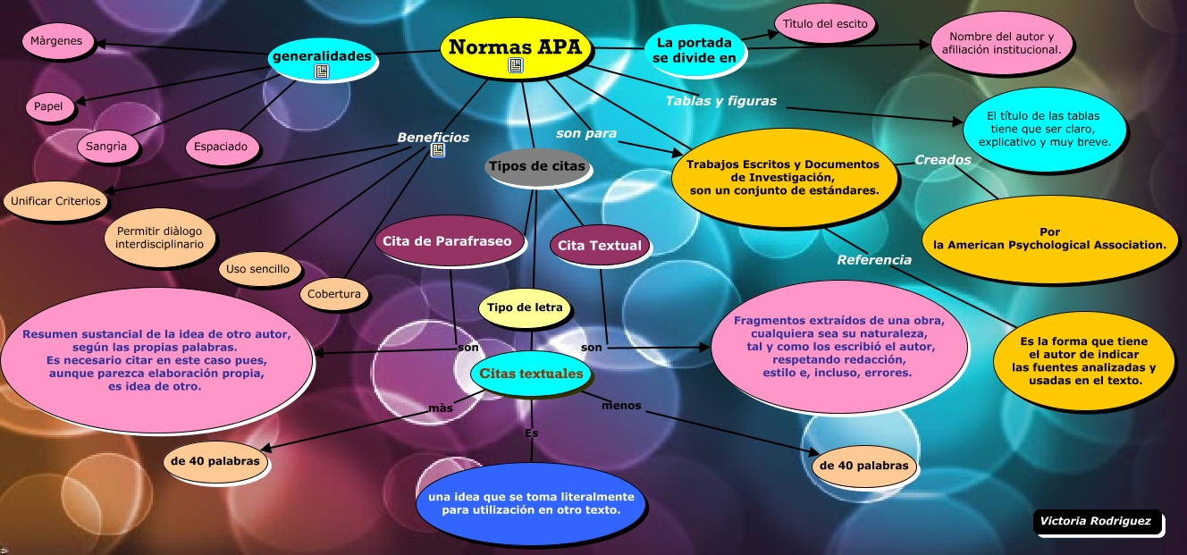 Este Cmap, tiene información relacionada con: Normas apa, Normas APA Beneficios Cobertura, Normas APA Beneficios Uso sencillo, Cita de Parafraseo son Resumen sustancial de la idea de otro autor, según las propias palabras. Es necesario citar en este caso pues, aunque parezca elaboración propia, es idea de otro., Normas APA generalidades Màrgenes, Citas textuales màs de 40 palabras, Normas APA generalidades Papel, Citas textuales Es una idea que se toma literalmente para utilización en otro texto., Normas APA Referencia Es la forma que tiene el autor de indicar las fuentes analizadas y usadas en el texto., Normas APA generalidades Espaciado, Normas APA La portada se divide en Tìtulo del escito, Normas APA Tipos de citas Cita de Parafraseo, Normas APA Tablas y figuras El título de las tablas tiene que ser claro, explicativo y muy breve., Citas textuales menos de 40 palabras, Normas APA Tipos de citas Cita Textual, Trabajos Escritos y Documentos de Investigación, son un conjunto de estándares. Creados Por la American Psychological Association., Normas APA Tipos de citas Citas textuales, Normas APA Beneficios Unificar Criterios, Normas APA son para Trabajos Escritos y Documentos de Investigación, son un conjunto de estándares., Normas APA Beneficios Permitir diàlogo interdisciplinario, Normas APA La portada se divide en Nombre del autor y afiliación institucional.