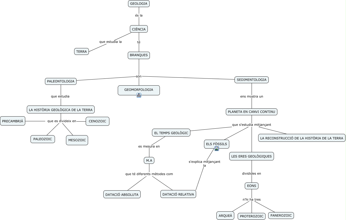 Este Cmap, tiene información relacionada con: Esquema Geologia, PLANETA EN CANVI CONTINU que s'estudia mitjançant LES ERES GEOLÒGIQUES, PLANETA EN CANVI CONTINU que s'estudia mitjançant ELS FÒSSILS, EONS n'hi ha tres PROTEROZOIC, EL TEMPS GEOLÒGIC es mesura en M.A, EONS n'hi ha tres ARQUEÀ, PLANETA EN CANVI CONTINU que s'estudia mitjançant LA RECONSTRUCCIÓ DE LA HISTÒRIA DE LA TERRA, PLANETA EN CANVI CONTINU que s'estudia mitjançant EL TEMPS GEOLÒGIC, EONS n'hi ha tres FANEROZOIC, LA HISTÒRIA GEOLÒGICA DE LA TERRA que es divideix en PRECAMBRIÀ, ELS FÒSSILS s'explica mitjançant la DATACIÓ RELATIVA, LA HISTÒRIA GEOLÒGICA DE LA TERRA que es divideix en PALEOZOIC, BRANQUES són SEDIMENTOLOGIA, PALEONTOLOGIA que estudia LA HISTÒRIA GEOLÒGICA DE LA TERRA, LES ERES GEOLÒGIQUES dividides en EONS, CIÈNCIA té BRANQUES, LA HISTÒRIA GEOLÒGICA DE LA TERRA que es divideix en CENOZOIC, M.A que té diferents mètodes com DATACIÓ RELATIVA, BRANQUES són PALEONTOLOGIA, BRANQUES són GEOMORFOLOGIA, SEDIMENTOLOGIA ens mostra un PLANETA EN CANVI CONTINU