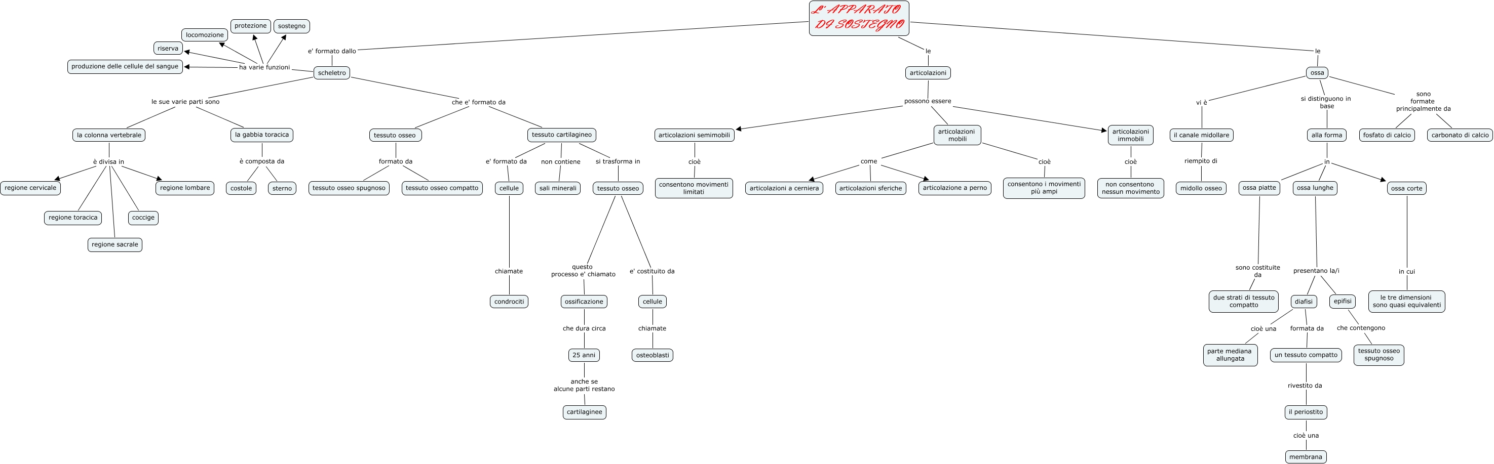 Questa Cmap, creata con IHMC CmapTools, contiene informazioni relative a: le ossa, tessuto osseo e' costituito da cellule, articolazioni mobili come articolazioni sferiche, ossificazione che dura circa 25 anni, scheletro che e' formato da tessuto cartilagineo, la gabbia toracica è composta da sterno, cellule chiamate condrociti, scheletro ha varie funzioni riserva, articolazioni mobili come articolazione a perno, la colonna vertebrale è divisa in coccige, articolazioni semimobili cioè consentono movimenti limitati, alla forma in ossa corte, ossa sono formate principalmente da fosfato di calcio, L' APPARATO DI SOSTEGNO le ossa, ossa sono formate principalmente da carbonato di calcio, diafisi cioè una parte mediana allungata, scheletro ha varie funzioni sostegno, articolazioni possono essere articolazioni semimobili, tessuto cartilagineo e' formato da cellule, scheletro le sue varie parti sono la gabbia toracica, articolazioni mobili come articolazioni a cerniera