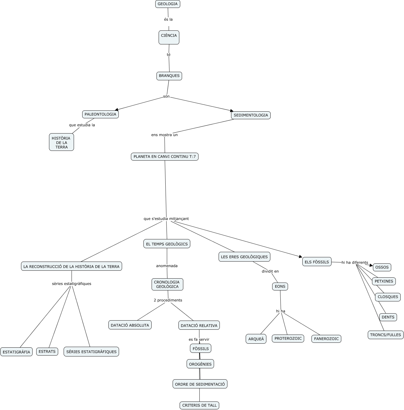 Aquest mapa conceptual conté informació relacionada amb: Marçal i oscar, DATACIÓ RELATIVA es fa servir OROGÈNIES, ELS FÒSSILS hi ha diferents OSSOS, PLANETA EN CANVI CONTINU T:7 que s'estudia mitjançant ELS FÒSSILS, BRANQUES són SEDIMENTOLOGIA, LA RECONSTRUCCIÓ DE LA HISTÒRIA DE LA TERRA sèries estatigràfiques ESTRATS, GEOLOGIA és la CIÈNCIA, DATACIÓ RELATIVA es fa servir FÒSSILS, EONS hi ha ARQUEÀ, DATACIÓ RELATIVA es fa servir ORDRE DE SEDIMENTACIÓ, ELS FÒSSILS hi ha diferents TRONCS/FULLES, CIÈNCIA té BRANQUES, EL TEMPS GEOLÒGICS anomenada CRONOLOGIA GEOLÒGICA, EONS hi ha PROTEROZOIC, LA RECONSTRUCCIÓ DE LA HISTÒRIA DE LA TERRA sèries estatigràfiques ESTATIGRÀFIA, PLANETA EN CANVI CONTINU T:7 que s'estudia mitjançant EL TEMPS GEOLÒGICS, ELS FÒSSILS hi ha diferents DENTS, DATACIÓ RELATIVA es fa servir CRITERIS DE TALL, ELS FÒSSILS hi ha diferents CLOSQUES, BRANQUES són PALEONTOLOGIA, EONS hi ha FANEROZOIC