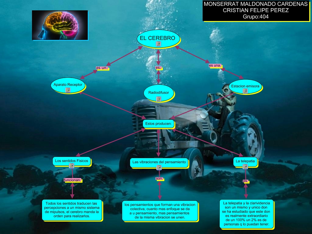 Este Cmap, tiene información relacionada con: MONSERRAT_MALDONADO_MAPA13, La telepatia es: La telepatia y la clarividencia son un mismo y unico don se ha estudiado que este don es realmente extraordiario de un 100% un 2% es de personas q lo puedan tener., Aparato Receptor ???? Estos producen:, Las vibraciones del pensamiento son: los pensamientos que forman una vibracion colectiva, cuanto mas enfoque se da a u pensamiento, mas pensamientos de la misma vibracion se unen., EL CEREBRO es un: Aparato Receptor, Estos producen: ???? Las vibraciones del pensamiento, EL CEREBRO es una: Estacion emisora, Estos producen: ???? Los sentidos Fisicos, Estos producen: ???? La telepatia, Estos producen: ???? Estacion emisora, Los sentidos Fisicos funcionan: Todos los sentidos traducen las percepciones a un mismo sistema de mipulsos, el cerebro manda la orden para realizarlos., EL CEREBRO es: Radiodifusor