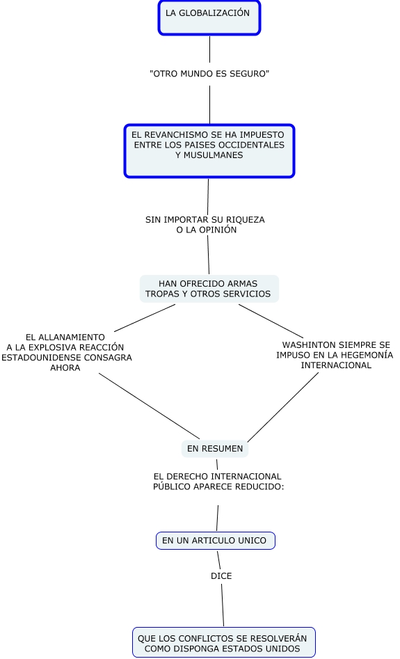 Este Cmap, tiene información relacionada con: ERIK_DANIEL_AGUILAR_GARCIAMAPA2, EN RESUMEN EL DERECHO INTERNACIONAL PÚBLICO APARECE REDUCIDO: EN UN ARTICULO UNICO, EL REVANCHISMO SE HA IMPUESTO ENTRE LOS PAISES OCCIDENTALES Y MUSULMANES SIN IMPORTAR SU RIQUEZA O LA OPINIÓN HAN OFRECIDO ARMAS TROPAS Y OTROS SERVICIOS, EN UN ARTICULO UNICO DICE QUE LOS CONFLICTOS SE RESOLVERÁN COMO DISPONGA ESTADOS UNIDOS, HAN OFRECIDO ARMAS TROPAS Y OTROS SERVICIOS WASHINTON SIEMPRE SE IMPUSO EN LA HEGEMONÍA INTERNACIONAL, HAN OFRECIDO ARMAS TROPAS Y OTROS SERVICIOS EL ALLANAMIENTO A LA EXPLOSIVA REACCIÓN ESTADOUNIDENSE CONSAGRA AHORA EN RESUMEN, LA GLOBALIZACIÓN "OTRO MUNDO ES SEGURO" EL REVANCHISMO SE HA IMPUESTO ENTRE LOS PAISES OCCIDENTALES Y MUSULMANES