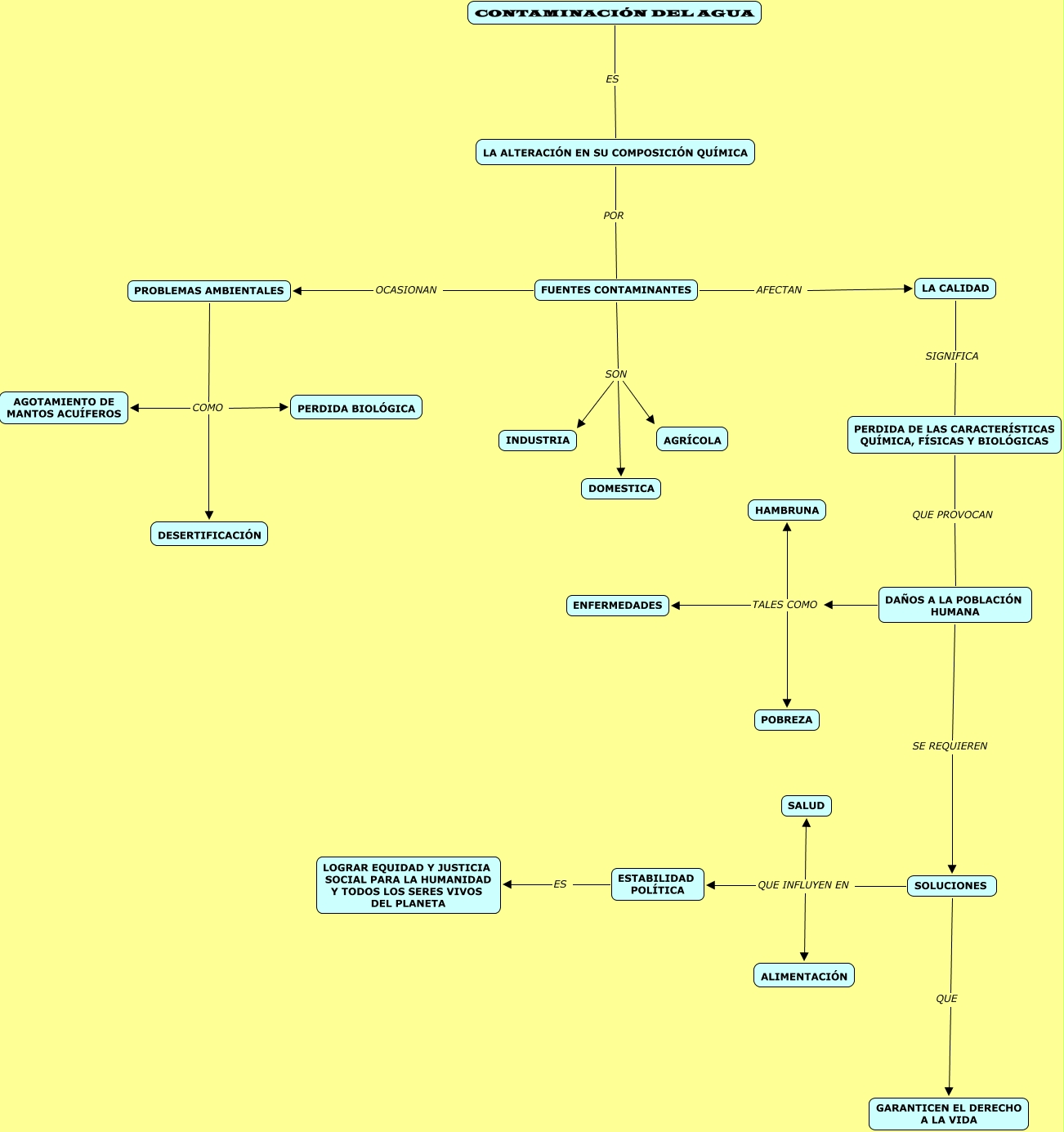 Este Cmap, tiene información relacionada con: CONTAMINACIÓN DEL AGUA, ESTABILIDAD POLÍTICA ES LOGRAR EQUIDAD Y JUSTICIA SOCIAL PARA LA HUMANIDAD Y TODOS LOS SERES VIVOS DEL PLANETA, PROBLEMAS AMBIENTALES COMO PERDIDA BIOLÓGICA, PERDIDA DE LAS CARACTERÍSTICAS QUÍMICA, FÍSICAS Y BIOLÓGICAS QUE PROVOCAN DAÑOS A LA POBLACIÓN HUMANA, LA ALTERACIÓN EN SU COMPOSICIÓN QUÍMICA POR FUENTES CONTAMINANTES, FUENTES CONTAMINANTES SON INDUSTRIA, SOLUCIONES QUE INFLUYEN EN ESTABILIDAD POLÍTICA, SOLUCIONES QUE INFLUYEN EN SALUD, LA CALIDAD SIGNIFICA PERDIDA DE LAS CARACTERÍSTICAS QUÍMICA, FÍSICAS Y BIOLÓGICAS, CONTAMINACIÓN DEL AGUA ES LA ALTERACIÓN EN SU COMPOSICIÓN QUÍMICA, DAÑOS A LA POBLACIÓN HUMANA SE REQUIEREN SOLUCIONES, DAÑOS A LA POBLACIÓN HUMANA TALES COMO HAMBRUNA, FUENTES CONTAMINANTES SON AGRÍCOLA, FUENTES CONTAMINANTES SON DOMESTICA, DAÑOS A LA POBLACIÓN HUMANA TALES COMO POBREZA, SOLUCIONES QUE INFLUYEN EN ALIMENTACIÓN, FUENTES CONTAMINANTES OCASIONAN PROBLEMAS AMBIENTALES, PROBLEMAS AMBIENTALES COMO AGOTAMIENTO DE MANTOS ACUÍFEROS, DAÑOS A LA POBLACIÓN HUMANA TALES COMO ENFERMEDADES, SOLUCIONES QUE GARANTICEN EL DERECHO A LA VIDA, PROBLEMAS AMBIENTALES COMO DESERTIFICACIÓN