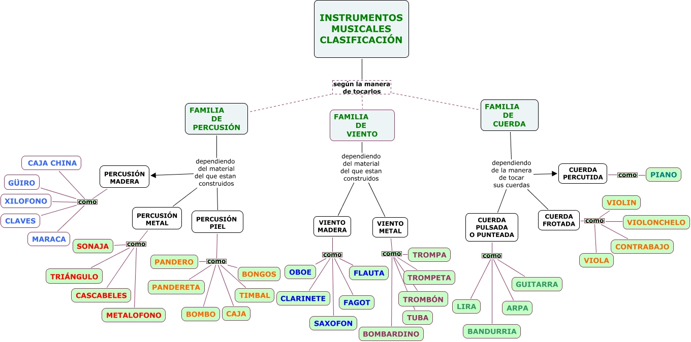 Este Cmap, tiene información relacionada con: CLASIFICACIÓN INSTRUMENTOS 2015, FAMILIA DE VIENTO dependiendo del material del que estan construidos VIENTO METAL, VIENTO MADERA como SAXOFON, VIENTO MADERA como OBOE, VIENTO METAL como TROMBÓN, PERCUSIÓN MADERA como CAJA CHINA, VIENTO METAL como TUBA, PERCUSIÓN METAL como TRIÁNGULO, CUERDA FROTADA como VIOLIN, VIENTO MADERA como CLARINETE, PERCUSIÓN PIEL como TIMBAL, FAMILIA DE VIENTO dependiendo del material del que estan construidos VIENTO MADERA, FAMILIA DE CUERDA dependiendo de la manera de tocar sus cuerdas CUERDA FROTADA, VIENTO METAL como TROMPA, CUERDA FROTADA como VIOLONCHELO, CUERDA PULSADA O PUNTEADA como GUITARRA, PERCUSIÓN MADERA como CLAVES, FAMILIA DE PERCUSIÓN dependiendo del material del que estan construidos PERCUSIÓN MADERA, VIENTO MADERA como FLAUTA, PERCUSIÓN MADERA como XILOFONO, PERCUSIÓN PIEL como PANDERETA