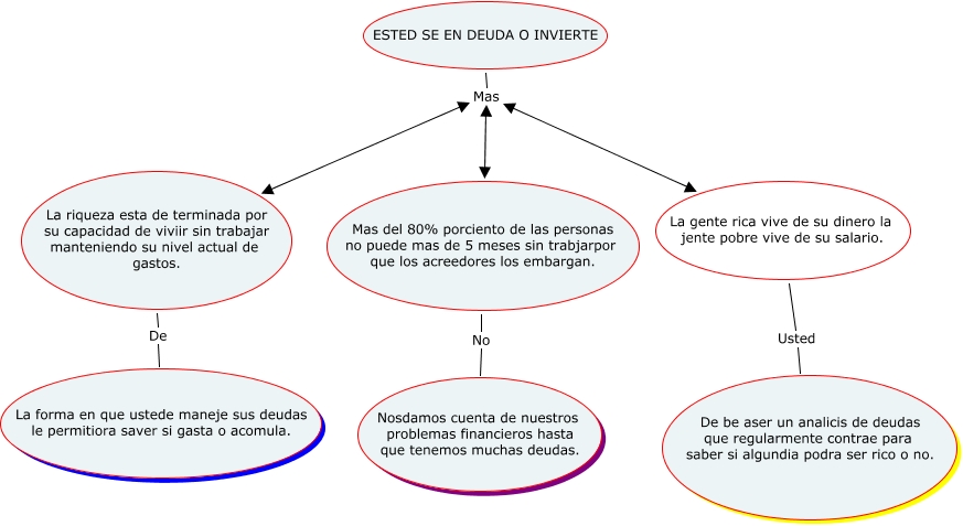 Este Cmap, tiene información relacionada con: carlos daniel_nava_mapa2, ESTED SE EN DEUDA O INVIERTE Mas La gente rica vive de su dinero la jente pobre vive de su salario., La gente rica vive de su dinero la jente pobre vive de su salario. Usted De be aser un analicis de deudas que regularmente contrae para saber si algundia podra ser rico o no., ESTED SE EN DEUDA O INVIERTE Mas La riqueza esta de terminada por su capacidad de viviir sin trabajar manteniendo su nivel actual de gastos., Mas del 80% porciento de las personas no puede mas de 5 meses sin trabjarpor que los acreedores los embargan. No Nosdamos cuenta de nuestros problemas financieros hasta que tenemos muchas deudas., ESTED SE EN DEUDA O INVIERTE Mas Mas del 80% porciento de las personas no puede mas de 5 meses sin trabjarpor que los acreedores los embargan., La riqueza esta de terminada por su capacidad de viviir sin trabajar manteniendo su nivel actual de gastos. De La forma en que ustede maneje sus deudas le permitiora saver si gasta o acomula.