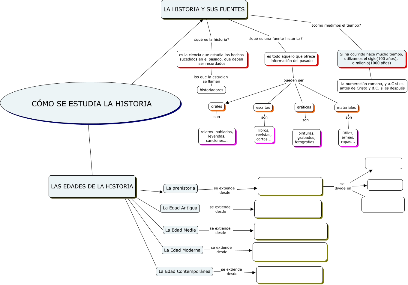 Este Cmap, tiene información relacionada con: CÓMO SE ESTUDIA LA HISTORIA mudo, gráficas son pinturas, grabados, fotografías..., es todo aquello que ofrece información del pasado pueden ser materiales, Si ha ocurrido hace mucho tiempo, utilizamos el siglo(100 años), o milenio(1000 años) se utiliza la numeración romana, y a.C si es antes de Cristo y d.C. si es después, materiales son útiles, armas, ropas..., La Edad Media se extiende desde, escritas son libros, revistas, cartas..., se divide en, La prehistoria se extiende desde, LA HISTORIA Y SUS FUENTES ¿cómo medimos el tiempo? Si ha ocurrido hace mucho tiempo, utilizamos el siglo(100 años), o milenio(1000 años), es todo aquello que ofrece información del pasado pueden ser escritas, es todo aquello que ofrece información del pasado pueden ser gráficas, LAS EDADES DE LA HISTORIA ???? La Edad Antigua, es todo aquello que ofrece información del pasado pueden ser orales, se divide en, La Edad Contemporánea se extiende desde, La Edad Antigua se extiende desde, LAS EDADES DE LA HISTORIA ???? La prehistoria, CÓMO SE ESTUDIA LA HISTORIA ???? LAS EDADES DE LA HISTORIA, La Edad Moderna se extiende desde, se divide en