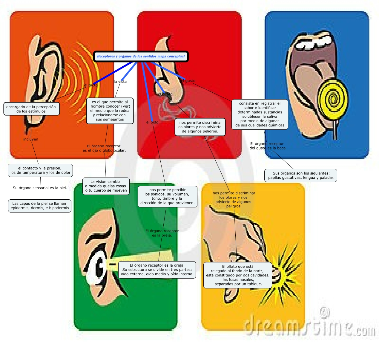 Este Cmap, tiene información relacionada con: mapa conceptual, encargado de la percepción de los estímulos incluyen el contacto y la presión, los de temperatura y los de dolor, Receptores y órganos de los sentidos mapa conceptual el gusto consiste en registrar el sabor e identificar determinadas sustancias solublesen la saliva por medio de algunas de sus cualidades químicas., Receptores y órganos de los sentidos mapa conceptual el olfato nos permite discriminar los olores y nos advierte de algunos peligros., es el que permite al hombre conocer (ver) el medio que lo rodea y relacionarse con sus semejantes El órgano receptor es el ojo o globo ocular. La visión cambia a medida quelas cosas o tu cuerpo se mueven, Receptores y órganos de los sentidos mapa conceptual el tacto encargado de la percepción de los estímulos, nos permite percibir los sonidos, su volumen, tono, timbre y la dirección de la que provienen. El órgano receptor es la oreja. El órgano receptor es la oreja. Su estructura se divide en tres partes: oído externo, oído medio y oído interno., Receptores y órganos de los sentidos mapa conceptual la vista es el que permite al hombre conocer (ver) el medio que lo rodea y relacionarse con sus semejantes, consiste en registrar el sabor e identificar determinadas sustancias solublesen la saliva por medio de algunas de sus cualidades químicas. El órgano receptor del gusto es la boca Sus órganos son los siguientes: papilas gustativas, lengua y paladar., Receptores y órganos de los sentidos mapa conceptual el oido nos permite percibir los sonidos, su volumen, tono, timbre y la dirección de la que provienen., nos permite discriminar los olores y nos advierte de algunos peligros. nos permite discriminar los olores y nos advierte de algunos peligros. El olfato que está relegado al fondo de la nariz, está constituido por dos cavidades, las fosas nasales, separadas por un tabique., el contacto y la presión, los de temperatura y los de dolor Su órgano sensorial es la piel. Las capas de la piel se llaman epidermis, dermis, e hipodermis