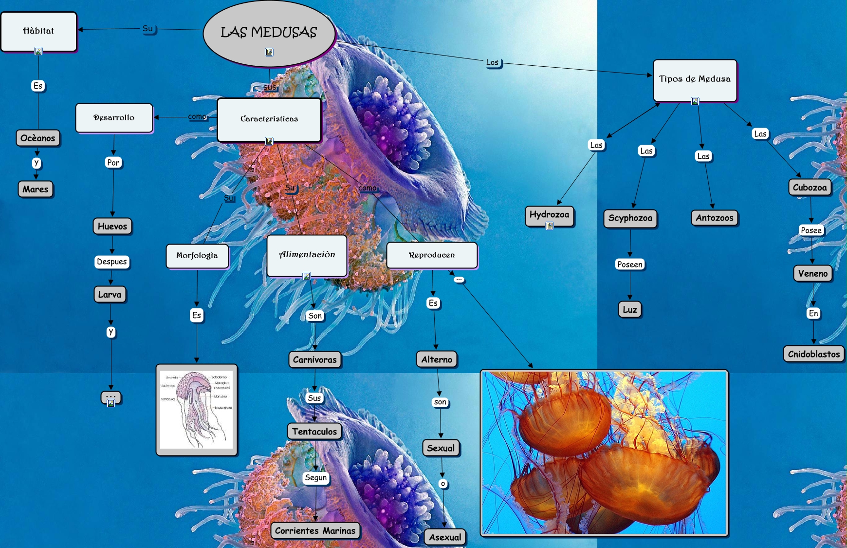 Este Cmap, tiene información relacionada con: medusas, Carnivoras Sus Tentaculos, Ocèanos y Mares, Tipos de Medusa Las Cubozoa, Características como Desarrollo, LAS MEDUSAS Su Hàbitat, Alimentaciòn Son Carnivoras, Características Su Alimentaciòn, Tipos de Medusa Las Scyphozoa, Cubozoa Posee Veneno, Tentaculos Segun Corrientes Marinas, LAS MEDUSAS Los Tipos de Medusa, Tipos de Medusa Las Hydrozoa, Larva y ..., Desarrollo Por Huevos, Reproducen Es Alterno, Scyphozoa Poseen Luz, Veneno En Cnidoblastos, Sexual o Asexual, Reproducen ..., Morfologìa Es