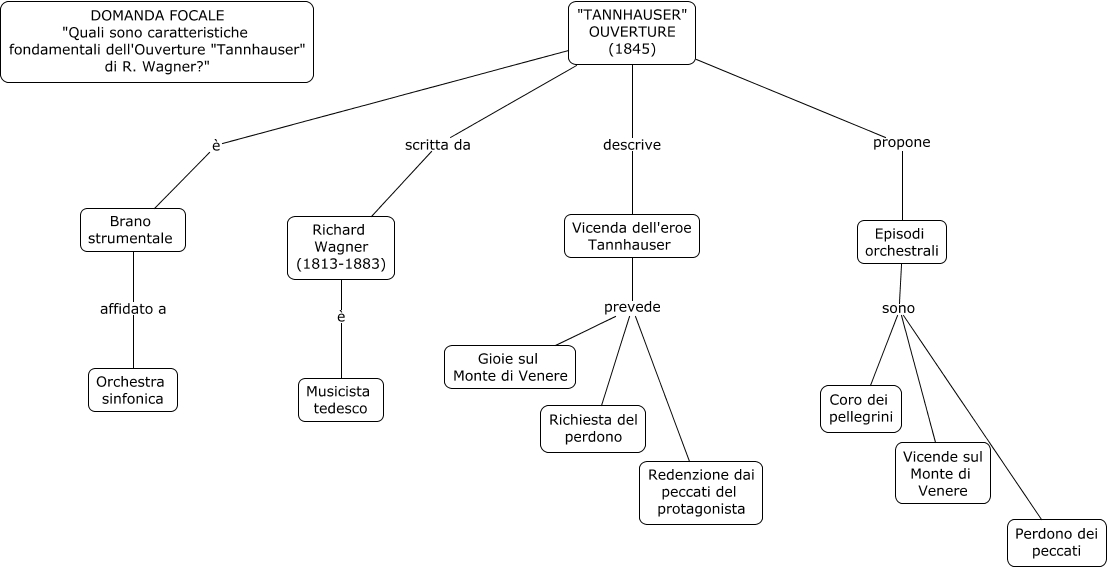 Questa Cmap, creata con IHMC CmapTools, contiene informazioni relative a: Tannhauser Ouverture (R. Wagner), "TANNHAUSER" OUVERTURE (1845) descrive Vicenda dell'eroe Tannhauser, Episodi orchestrali sono Perdono dei peccati, Vicenda dell'eroe Tannhauser prevede Gioie sul Monte di Venere, "TANNHAUSER" OUVERTURE (1845) è Brano strumentale, Vicenda dell'eroe Tannhauser prevede Redenzione dai peccati del protagonista, Episodi orchestrali sono Coro dei pellegrini, Vicenda dell'eroe Tannhauser prevede Richiesta del perdono, Episodi orchestrali sono Vicende sul Monte di Venere, "TANNHAUSER" OUVERTURE (1845) scritta da Richard Wagner (1813-1883), "TANNHAUSER" OUVERTURE (1845) propone Episodi orchestrali, Richard Wagner (1813-1883) è Musicista tedesco, Brano strumentale affidato a Orchestra sinfonica