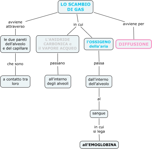Questa Cmap, creata con IHMC CmapTools, contiene informazioni relative a: LO SCAMBIO DI GAS, L'ANIDRIDE CARBONICA e il VAPORE ACQUEO passano all'interno degli alveoli, LO SCAMBIO DI GAS in cui l'OSSIGENO della'aria, dall'interno dell'alveolo al sangue, l'OSSIGENO della'aria passa dall'interno dell'alveolo, le due pareti dell'alveolo e del capillare che sono a contatto tra loro, LO SCAMBIO DI GAS avviene per DIFFUSIONE, LO SCAMBIO DI GAS in cui L'ANIDRIDE CARBONICA e il VAPORE ACQUEO, sangue in cui si lega all'EMOGLOBINA, LO SCAMBIO DI GAS avviene attraverso le due pareti dell'alveolo e del capillare