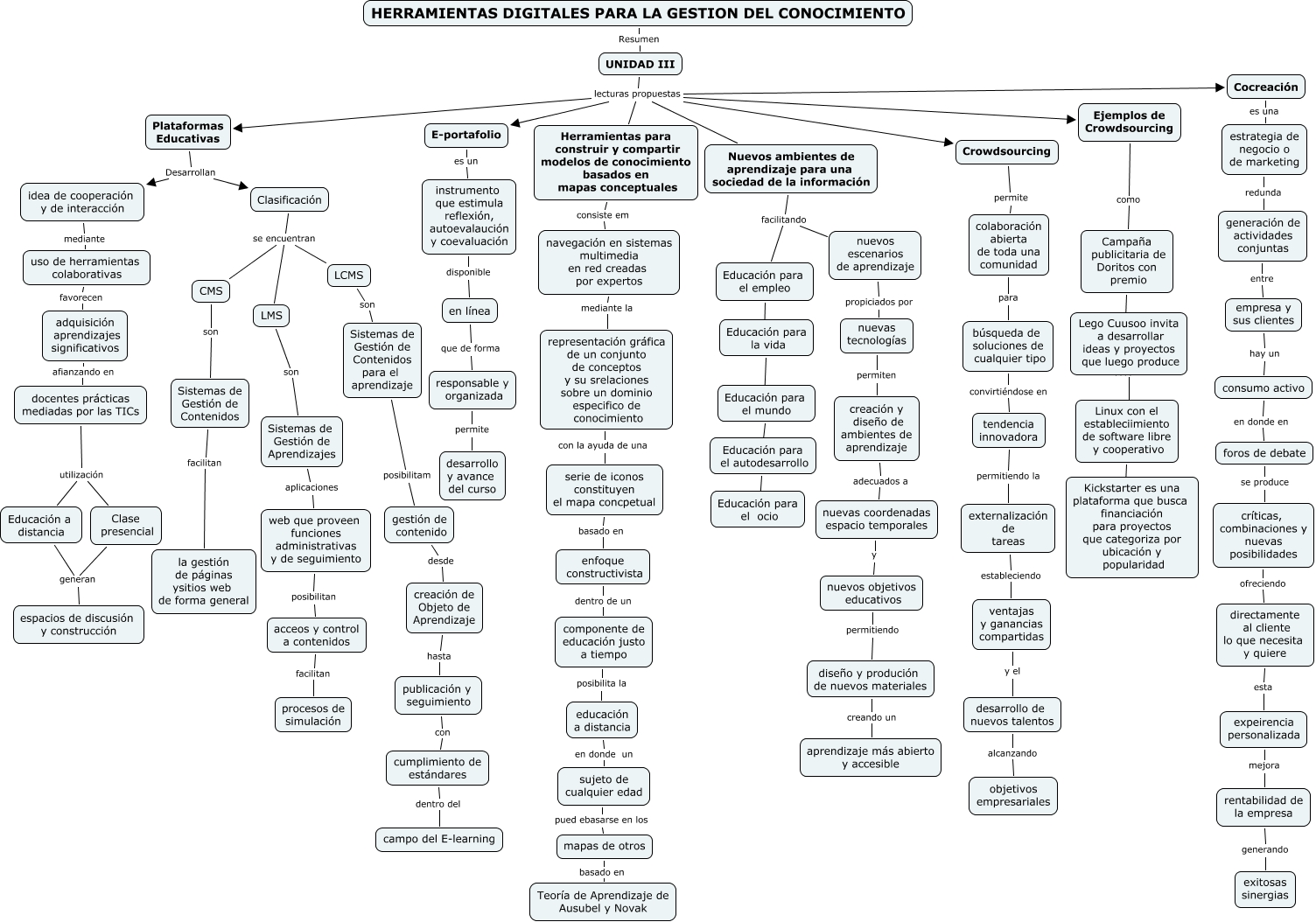 Este Cmap, tiene información relacionada con: RESUMEN UNIDAD 3, uso de herramientas colaborativas favorecen adquisición aprendizajes significativos, LMS son Sistemas de Gestión de Aprendizajes, tendencia innovadora permitiendo la externalización de tareas, Sistemas de Gestión de Contenidos para el aprendizaje posibilitam gestión de contenido, docentes prácticas mediadas por las TICs utilización Educación a distancia, acceos y control a contenidos facilitan procesos de simulación, Educación a distancia generan espacios de discusión y construcción, expeirencia personalizada mejora rentabilidad de la empresa, CMS son Sistemas de Gestión de Contenidos, búsqueda de soluciones de cualquier tipo convirtiéndose en tendencia innovadora, rentabilidad de la empresa generando exitosas sinergias, UNIDAD III lecturas propuestas Ejemplos de Crowdsourcing, publicación y seguimiento con cumplimiento de estándares, Educación para el empleo ???? Educación para la vida, mapas de otros basado en Teoría de Aprendizaje de Ausubel y Novak, Linux con el estableciimiento de software libre y cooperativo ???? Kickstarter es una plataforma que busca financiación para proyectos que categoriza por ubicación y popularidad, representación gráfica de un conjunto de conceptos y su srelaciones sobre un dominio especifico de conocimiento con la ayuda de una serie de iconos constituyen el mapa concpetual, Sistemas de Gestión de Contenidos facilitan la gestión de páginas ysitios web de forma general, Clasificación se encuentran CMS, Nuevos ambientes de aprendizaje para una sociedad de la información facilitando nuevos escenarios de aprendizaje