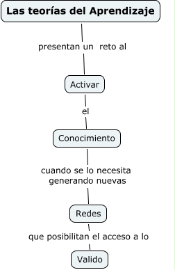Este Cmap, tiene información relacionada con: Teorias del aprendizaje, Las teorías del Aprendizaje presentan un reto al Activar, Conocimiento cuando se lo necesita generando nuevas Redes, Activar el Conocimiento, Redes que posibilitan el acceso a lo Valido