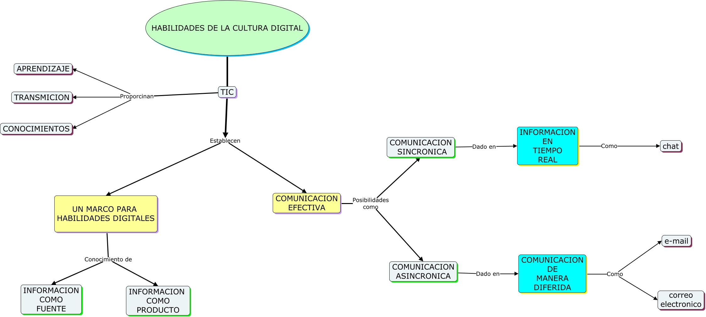 Este Cmap, tiene información relacionada con: Habilidades de la cultura digital, COMUNICACION EFECTIVA Posibilidades como COMUNICACION ASINCRONICA, TIC Establecen COMUNICACION EFECTIVA, TIC Proporcinan APRENDIZAJE, COMUNICACION DE MANERA DIFERIDA Como correo electronico, TIC Establecen UN MARCO PARA HABILIDADES DIGITALES, COMUNICACION EFECTIVA Posibilidades como COMUNICACION SINCRONICA, TIC Proporcinan CONOCIMIENTOS, COMUNICACION DE MANERA DIFERIDA Como e-mail, COMUNICACION SINCRONICA Dado en INFORMACION EN TIEMPO REAL, INFORMACION EN TIEMPO REAL Como chat, UN MARCO PARA HABILIDADES DIGITALES Conocimiento de INFORMACION COMO FUENTE, UN MARCO PARA HABILIDADES DIGITALES Conocimiento de INFORMACION COMO PRODUCTO, TIC Proporcinan TRANSMICION, HABILIDADES DE LA CULTURA DIGITAL Evolucion TIC, COMUNICACION ASINCRONICA Dado en COMUNICACION DE MANERA DIFERIDA