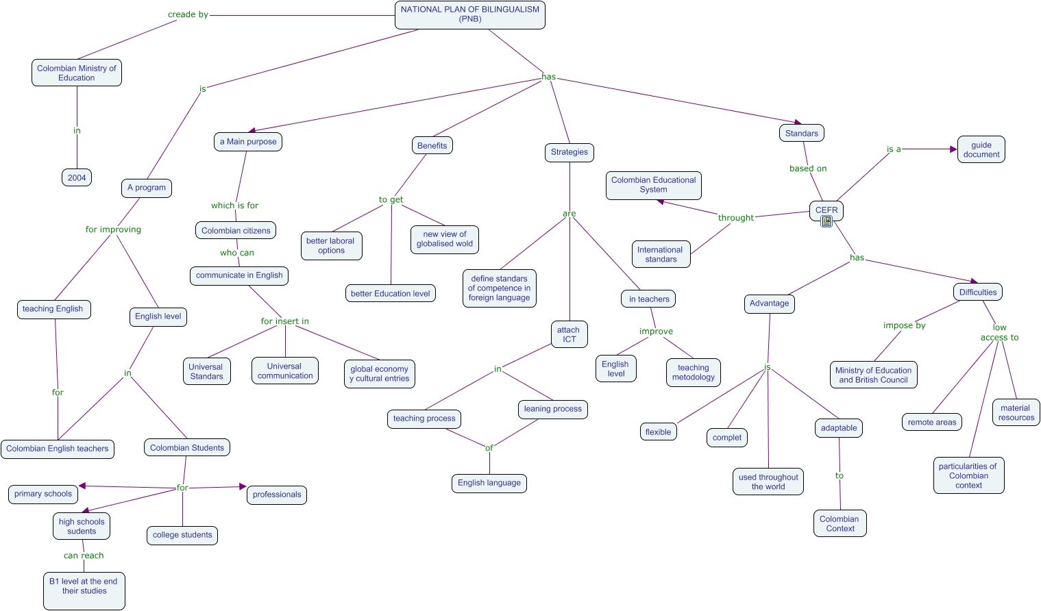 Este Cmap, tiene información relacionada con: National plan of Bilngualism in Colombia