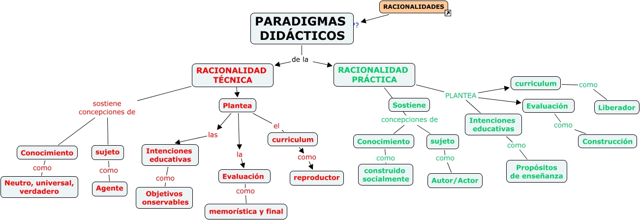 Este Cmap, tiene información relacionada con: marco teórico´planificación en el jardín, PARADIGMAS DIDÁCTICOS de la RACIONALIDAD PRÁCTICA, RACIONALIDAD PRÁCTICA PLANTEA curriculum, RACIONALIDAD PRÁCTICA PLANTEA Intenciones educativas, RACIONALIDAD TÉCNICA sostiene concepciones de Conocimiento, Conocimiento como construido socialmente, Evaluación como Construcción, Intenciones educativas como Propósitos de enseñanza, RACIONALIDADES ???? PARADIGMAS DIDÁCTICOS, Evaluación como memorística y final, RACIONALIDAD PRÁCTICA PLANTEA Evaluación, Plantea las Intenciones educativas, Plantea el curriculum, RACIONALIDAD PRÁCTICA concepciones de sujeto, RACIONALIDAD TÉCNICA ???? Plantea, Intenciones educativas como Objetivos onservables, RACIONALIDAD PRÁCTICA concepciones de Conocimiento, curriculum como Liberador, sujeto como Autor/Actor, PARADIGMAS DIDÁCTICOS de la RACIONALIDAD TÉCNICA, Conocimiento como Neutro, universal, verdadero