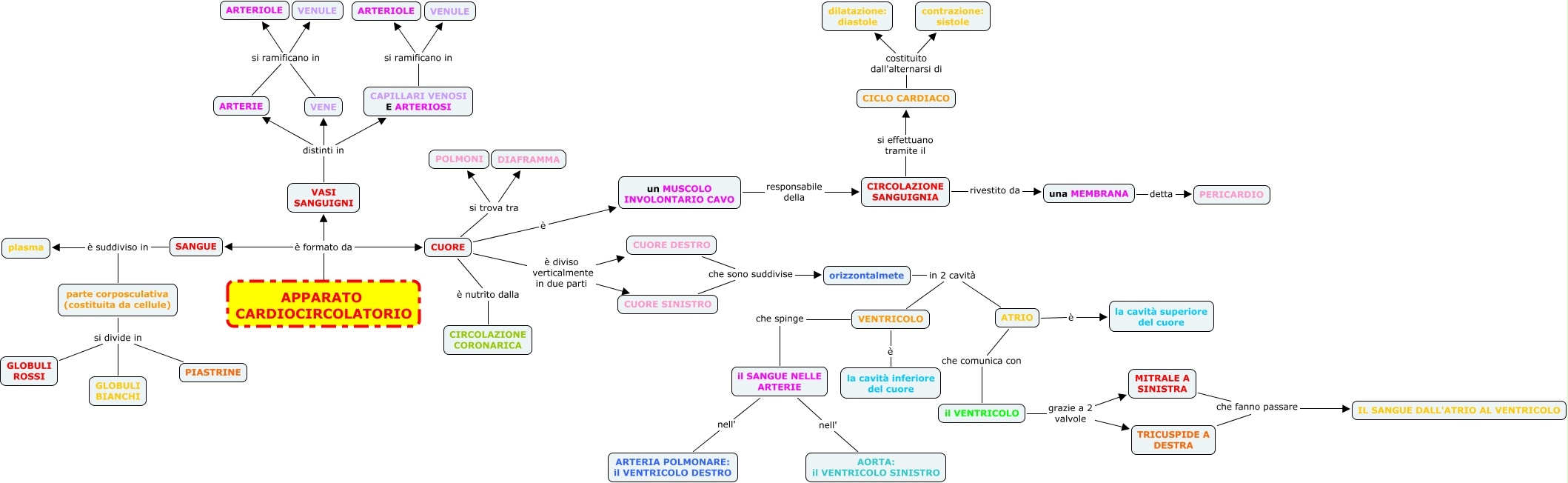 Questa Cmap, creata con IHMC CmapTools, contiene informazioni relative a: APPARATO CARDIOCIRCOLATORIO, CICLO CARDIACO costituito dall'alternarsi di contrazione: sistole, il VENTRICOLO grazie a 2 valvole MITRALE A SINISTRA, parte corposculativa (costituita da cellule) si divide in GLOBULI ROSSI, APPARATO CARDIOCIRCOLATORIO è formato da SANGUE, CICLO CARDIACO costituito dall'alternarsi di dilatazione: diastole, VASI SANGUIGNI distinti in CAPILLARI VENOSI E ARTERIOSI, CUORE SINISTRO che sono suddivise orizzontalmete, SANGUE è suddiviso in plasma, ATRIO è la cavità superiore del cuore, il SANGUE NELLE ARTERIE nell' ARTERIA POLMONARE: il VENTRICOLO DESTRO, CUORE è un MUSCOLO INVOLONTARIO CAVO, VENTRICOLO che spinge il SANGUE NELLE ARTERIE, CUORE è diviso verticalmente in due parti CUORE SINISTRO, ARTERIE si ramificano in VENULE, VENTRICOLO è la cavità inferiore del cuore, una MEMBRANA detta PERICARDIO, parte corposculativa (costituita da cellule) si divide in GLOBULI BIANCHI, parte corposculativa (costituita da cellule) si divide in PIASTRINE, il SANGUE NELLE ARTERIE nell' AORTA: il VENTRICOLO SINISTRO, CUORE è nutrito dalla CIRCOLAZIONE CORONARICA