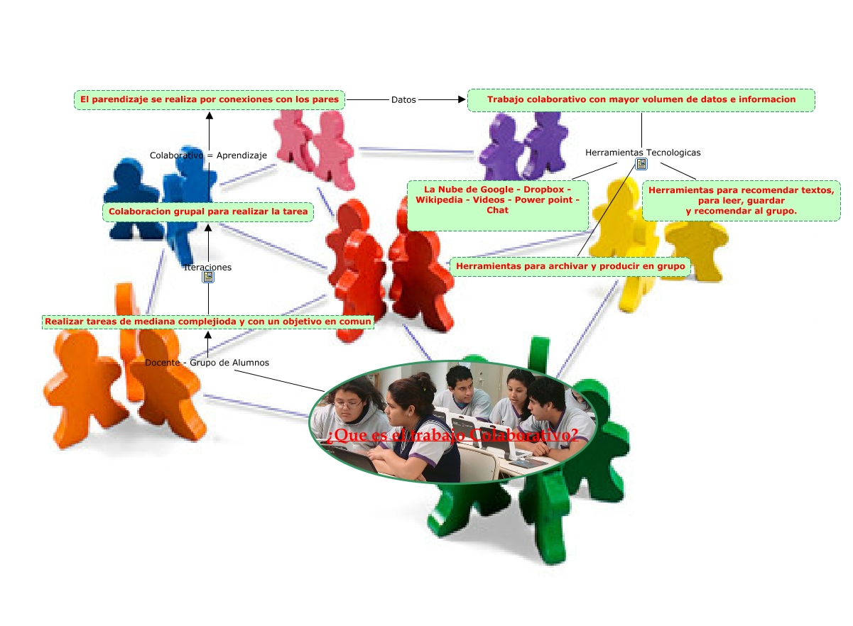 Este Cmap, tiene información relacionada con: Mapa Conceptual, ¿Que es el trabajo Colaborativo? Docente - Grupo de Alumnos Realizar tareas de mediana complejioda y con un objetivo en comun, Realizar tareas de mediana complejioda y con un objetivo en comun Iteraciones Colaboracion grupal para realizar la tarea, Trabajo colaborativo con mayor volumen de datos e informacion Herramientas Tecnologicas Herramientas para recomendar textos, para leer, guardar y recomendar al grupo., Trabajo colaborativo con mayor volumen de datos e informacion Herramientas Tecnologicas La Nube de Google - Dropbox - Wikipedia - Videos - Power point - Chat, Trabajo colaborativo con mayor volumen de datos e informacion Herramientas Tecnologicas Herramientas para archivar y producir en grupo, El parendizaje se realiza por conexiones con los pares Datos Trabajo colaborativo con mayor volumen de datos e informacion, Colaboracion grupal para realizar la tarea Colaborativo = Aprendizaje El parendizaje se realiza por conexiones con los pares