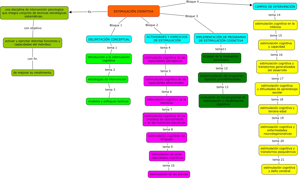 Este Cmap, tiene información relacionada con: ESTIMULACIÓN COGNITIVA, el papel de la evaluación psicologíca tema 12 implementación del programa: aspectos procedimentales, estrategias de intervención tema 3 modelos y enfoques teóricos, estimulación de otras capacidades cognitivas tema 10 estimulación de las praxias, estimulación cognitiva y enfermedades neurodegenerativas tema 20 estimulación cognitiva y transtornos psiquiátricos, ESTIMULACIÓN COGNITIVA Bloque 4 CAMPOS DE INTERVENCIÓN, estimulación cognitiva y tercera edad tema 19 estimulación cognitiva y enfermedades neurodegenerativas, ESTIMULACIÓN COGNITIVA Es una disciplina de intervención psicologíca que integra conjunto de tecnicas estrategicas sistemáticas., ACTIVIDADES Y EJERCICIOS DE ESTIMULACIÓN tema 4 estimulación cognitiva de las capacidades perceptivas, una disciplina de intervención psicologíca que integra conjunto de tecnicas estrategicas sistemáticas. con objetivo activar y ejercitar distintas funciones y capacidades del individuo, DELIMITACIÓN CONCEPTUAL tema 1 introducción a la estimulación cognitiva, estimulación cognitiva y transtornos psiquiátricos tema 21 estimulación cognitiva y daño cerebral, estimulación cognitiva y capacidad tema 16 estimulación cognitiva y transtornos generalizados del desarrollo, estimulación cognitiva de los procesos de razonamiento y de las funciones ejecutivas tema 8 estimulación cognitiva del lenguaje, ESTIMULACIÓN COGNITIVA Bloque 1 DELIMITACIÓN CONCEPTUAL, estimulación cognitiva de las capacidades perceptivas tema 5 estimulación cognitiva de las capacidades atencionales, estimulación cognitiva en la infancia tema 15 estimulación cognitiva y capacidad, implementación del programa: aspectos procedimentales tema 13 evaluación de los programas de estimulación y rehabilitación cognitiva., estimulación cognitiva de las capacidades atencionales tema 6 estimulación cognitiva de la memoria, estimulación cognitiva de la memoria tema 7 estimulación cognitiva de los procesos de razonamiento y de las funciones ejecutivas, ESTIMULACIÓN COGNITIVA Bloque 2 ACTIVIDADES Y EJERCICIOS DE ESTIMULACIÓN