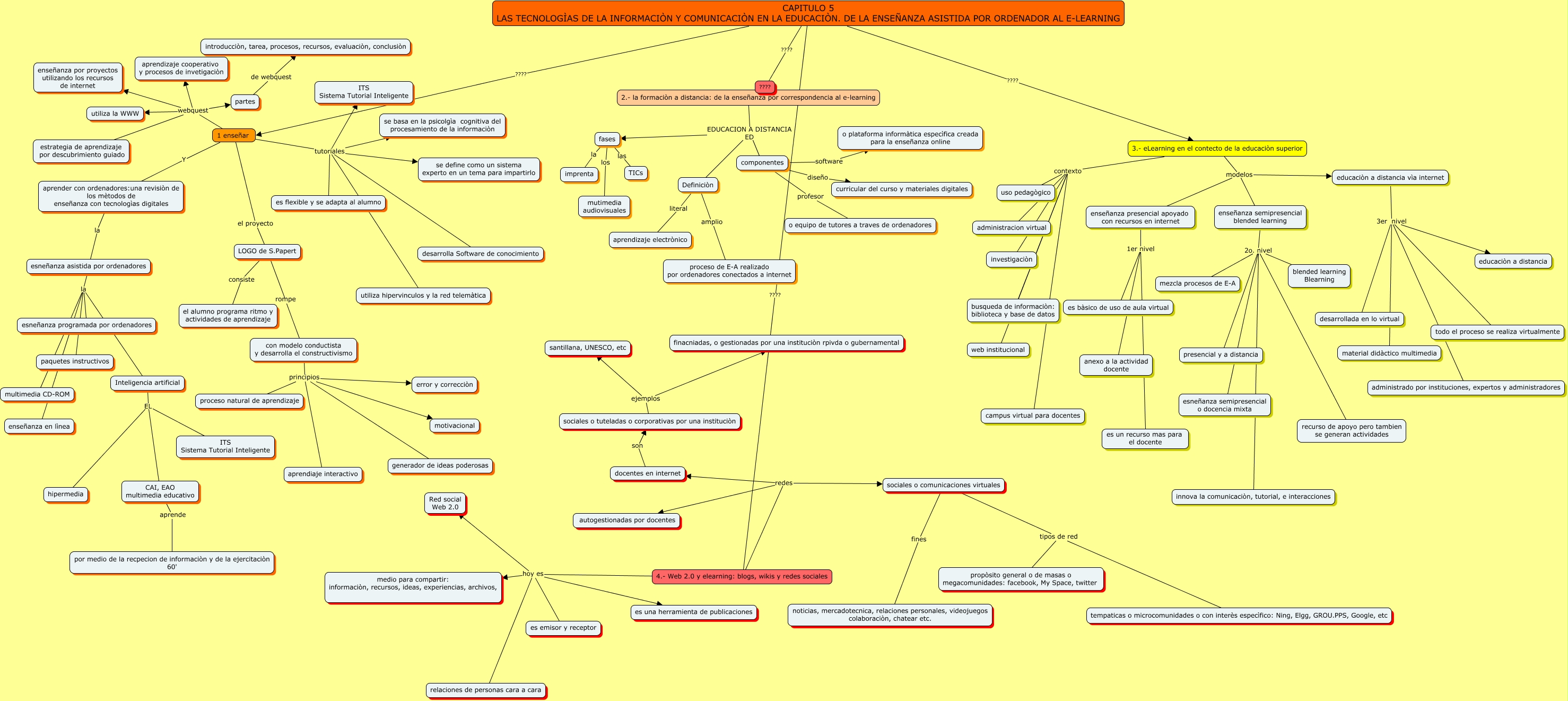 Este Cmap, tiene información relacionada con: CAPITULO 5, 4.- Web 2.0 y elearning: blogs, wikis y redes sociales redes docentes en internet, 1 enseñar tutoriales ITS Sistema Tutorial Inteligente, Inteligencia artificial EL CAI, EAO multimedia educativo, educaciòn a distancia vìa internet 3er nivel material didàctico multimedia, Inteligencia artificial EL hipermedia, 4.- Web 2.0 y elearning: blogs, wikis y redes sociales hoy es medio para compartir: informaciòn, recursos, ideas, experiencias, archivos,, 1 enseñar webquest utiliza la WWW, docentes en internet son sociales o tuteladas o corporativas por una instituciòn, esneñanza asistida por ordenadores la paquetes instructivos, 3.- eLearning en el contecto de la educaciòn superior contexto busqueda de informaciòn: biblioteca y base de datos, 4.- Web 2.0 y elearning: blogs, wikis y redes sociales hoy es Red social Web 2.0, educaciòn a distancia vìa internet 3er nivel todo el proceso se realiza virtualmente, CAPITULO 5 LAS TECNOLOGÌAS DE LA INFORMACIÒN Y COMUNICACIÒN EN LA EDUCACIÒN. DE LA ENSEÑANZA ASISTIDA POR ORDENADOR AL E-LEARNING ???? 3.- eLearning en el contecto de la educaciòn superior, 4.- Web 2.0 y elearning: blogs, wikis y redes sociales hoy es es una herramienta de publicaciones, 3.- eLearning en el contecto de la educaciòn superior contexto uso pedagògico, 3.- eLearning en el contecto de la educaciòn superior contexto investigaciòn, aprender con ordenadores:una revisiòn de los mètodos de enseñanza con tecnologìas digitales la esneñanza asistida por ordenadores, 1 enseñar tutoriales utiliza hipervinculos y la red telemàtica, educaciòn a distancia vìa internet 3er nivel desarrollada en lo virtual, con modelo conductista y desarrolla el constructivismo principios proceso natural de aprendizaje