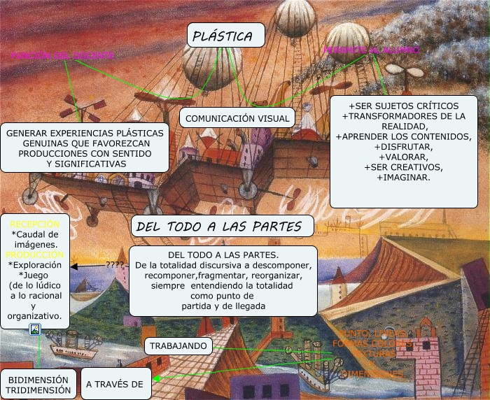 Este Cmap, tiene información relacionada con: PLÁSTICA, DEL TODO A LAS PARTES. De la totalidad discursiva a descomponer, recomponer,fragmentar, reorganizar, siempre entendiendo la totalidad como punto de partida y de llegada ???? RECEPCIÓN *Caudal de imágenes. PRODUCCIÓN *Exploración *Juego (de lo lúdico a lo racional y organizativo., PLÁSTICA FUNCIÓN DEL DOCENTE GENERAR EXPERIENCIAS PLÁSTICAS GENUINAS QUE FAVOREZCAN PRODUCCIONES CON SENTIDO Y SIGNIFICATIVAS, TRABAJANDO PUNTO, LINEAS, FORMAS,COLORES, TEXTURAS Y DIMENSIONES. A TRAVÉS DE, RECEPCIÓN *Caudal de imágenes. PRODUCCIÓN *Exploración *Juego (de lo lúdico a lo racional y organizativo. ???? BIDIMENSIÓN TRIDIMENSIÓN, PLÁSTICA PERRMITE AL ALUMNO +SER SUJETOS CRÍTICOS +TRANSFORMADORES DE LA REALIDAD, +APRENDER LOS CONTENIDOS, +DISFRUTAR, +VALORAR, +SER CREATIVOS, +IMAGINAR.
