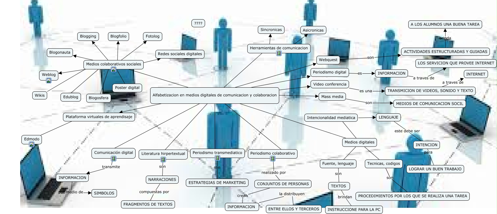 Este Cmap, tiene información relacionada con: anderson_cmapteorico11, Video conferencia es una TRANSMICION DE VIDEOS, SONIDO Y TEXTO, Intencionalidad mediatica ???? LENGUAJE, Herramientas de comunicacion ???? Sincronicas, Medios colaborativos sociales ???? Redes sociales digitales, Medios colaborativos sociales ???? Blogosfera, Alfabetizacion en medios digitales de comunicacion y colaboracion ???? Herramientas de comunicacion, Medios colaborativos sociales ???? Fotolog, Alfabetizacion en medios digitales de comunicacion y colaboracion ???? Periodismo digital, Medios colaborativos sociales ???? Blogfolio, Alfabetizacion en medios digitales de comunicacion y colaboracion ???? Medios colaborativos sociales, Alfabetizacion en medios digitales de comunicacion y colaboracion ???? Medios digitales, NARRACIONES compuestas por FRAGMENTOS DE TEXTOS, Alfabetizacion en medios digitales de comunicacion y colaboracion ???? Periodismo colaborativo, Comunicación digital transmite INFORMACION, Alfabetizacion en medios digitales de comunicacion y colaboracion ???? Webquest, Mass media son MEDIOS DE COMUNICACION SOCIL, INFORMACION por medio de SIMBOLOS, Periodismo transmediatico son ESTRATEGIAS DE MARKETING, Fuente, lenguaje son TEXTOS, Medios colaborativos sociales ???? Edublog