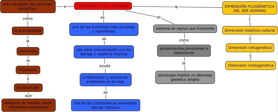 Este Cmap, tiene información relacionada con: DESARROLLO DEL LENGUAJE, DESARROLLO DEL LENGUAJE es una de las funciones mas cercanas y fsamiliares, linguistica o la psicologia, DESARROLLO DEL LENGUAJE es sistema de signos que transmite, DESARROLLO DEL LENGUAJE la DIMENSIÓN FILOGÉNETICA DEL SER HUMANO, Dimensión histórico-cultural 2 Dimensión ontogenética, la psicologia que asaltaron su estudio desde diferentes perpestivas, sistema de signos que transmite como pensamientos,emociones e intenciones, pensamientos,emociones e intenciones la psicología implica un abordaje genetico amplio, a refelxionar y solucionar problemas en la vida es una de las cracteristicas esenciales del ser humano, sociologia la linguistica, DIMENSIÓN FILOGÉNETICA DEL SER HUMANO 1 Dimensión histórico-cultural, una de las funciones mas cercanas y fsamiliares se usa para comunicación con los demas y nosotros mismos, sido estudiado por diversas disciplinas como la antropologia, Dimensión ontogenética 3 Dimensión miotogenética, usa para comunicación con los demas y nosotros mismos ayuda a refelxionar y solucionar problemas en la vida, DESARROLLO DEL LENGUAJE a sido estudiado por diversas disciplinas, la antropologia la sociologia