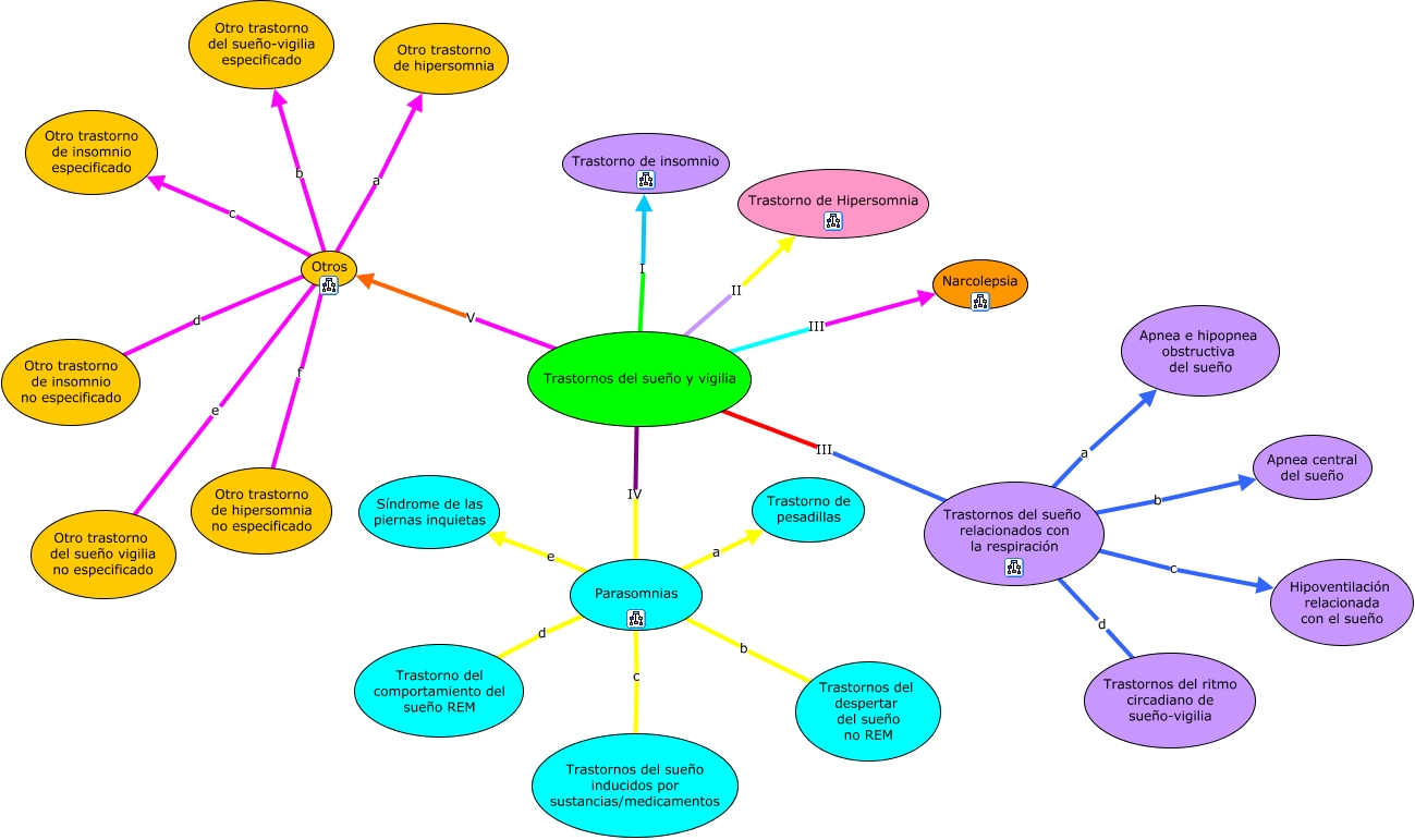 Este Cmap, tiene información relacionada con: Portada Trastornos del sueño vigilia, Otros a Otro trastorno de hipersomnia, Parasomnias e Síndrome de las piernas inquietas, Trastornos del sueño relacionados con la respiración a Apnea e hipopnea obstructiva del sueño, Parasomnias a Trastorno de pesadillas, Trastornos del sueño y vigilia V Otros, Otros d Otro trastorno de insomnio no especificado, Otros e Otro trastorno del sueño vigilia no especificado, Otros f Otro trastorno de hipersomnia no especificado, Parasomnias d Trastorno del comportamiento del sueño REM, Trastornos del sueño relacionados con la respiración b Apnea central del sueño, Trastornos del sueño relacionados con la respiración c Hipoventilación relacionada con el sueño, Parasomnias c Trastornos del sueño inducidos por sustancias/medicamentos, Trastornos del sueño y vigilia I Trastorno de insomnio, Trastornos del sueño relacionados con la respiración d Trastornos del ritmo circadiano de sueño-vigilia, Trastornos del sueño y vigilia IV Parasomnias, Trastornos del sueño y vigilia III Narcolepsia, Otros b Otro trastorno del sueño-vigilia especificado, Trastornos del sueño y vigilia III Trastornos del sueño relacionados con la respiración, Otros c Otro trastorno de insomnio especificado, Trastornos del sueño y vigilia II Trastorno de Hipersomnia