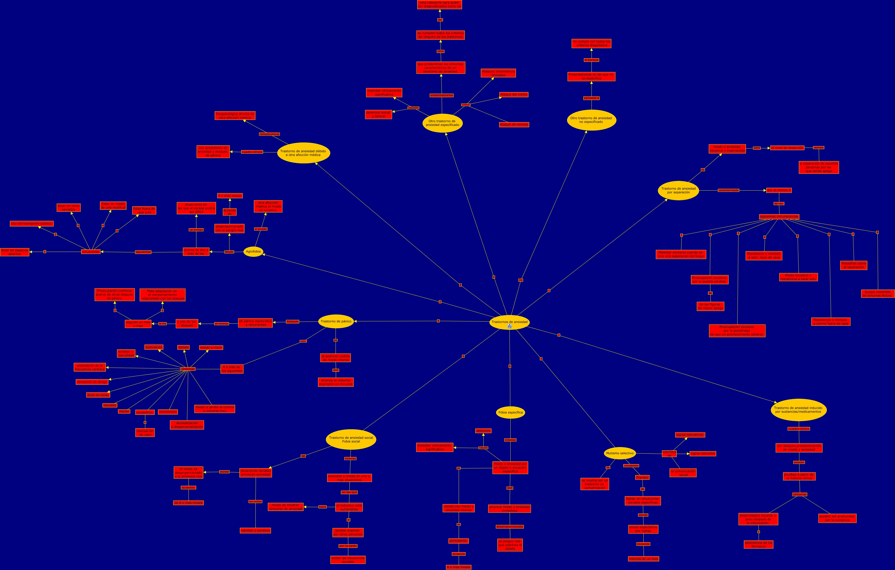 Este Cmap, tiene información relacionada con: Ansiedad, Agrofobia si existe otra afección médica el miedo es excesivo, 4 o más de los siguientes síntomas temblor o sacudidad, persistente duración 6 o mas meses, Trastornos de ansiedad 3 Mutismo selectivo, hablar en situaciones sociales específicas donde existe expectativa por hablar, Trastornos de ansiedad 5 Trastorno de ansiedad social Fobia social, Miedo o ansiedad por un objeto o situación específica causa deterioro, situaciones 5 Estar fuera de casa solo, Trastorno de ansiedad social Fobia social Intensa ansiedad o miedo en una o mas situaciones, Mutismo selectivo constante Fracaso, Trastorno de pánico es la aparición súbita de miedo intenso, 4 o más de los siguientes síntomas desrealización o despersonalización, Preocupación excesiva por la posible pérdida de de las figuras de mayor apego, siguientes circunstancias 8 Quejas repetidas de síntomas físicos , Miedo o ansiedad por un objeto o situación específica causa malestar clínicamente significativo, desproporcionado con el peligro real duración de 5 o más meses, Trastornos de ansiedad 1 Trastorno de ansiedad por separación, que predominan los síntomas característicos de un trastorno de ansiedad pero no cumplen todos los criterios de ninguno de los trastornos, de pánico inprevistos y recurrentes al menos a uno de los ataques, Agrofobia Miedo desproporcionado con el peligro real