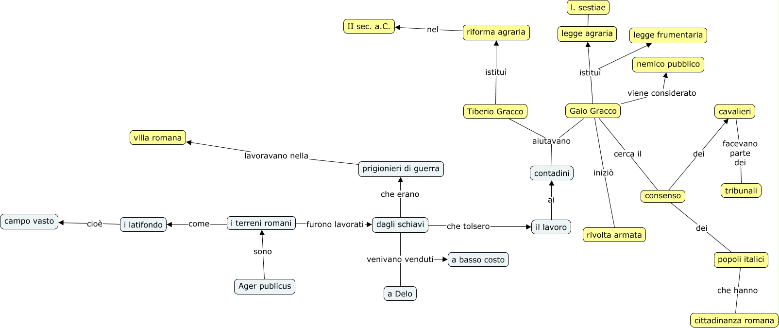 Questa Cmap, creata con IHMC CmapTools, contiene informazioni relative a: cbcr storia, Gaio Gracco aiutavano contadini, prigionieri di guerra lavoravano nella villa romana, Gaio Gracco iniziò rivolta armata, i latifondo cioè campo vasto, i terreni romani furono lavorati dagli schiavi, Gaio Gracco istituì legge agraria, dagli schiavi venivano venduti a Delo, Ager publicus sono i terreni romani, Gaio Gracco cerca il consenso, riforma agraria nel II sec. a.C., Tiberio Gracco aiutavano contadini, Tiberio Gracco istituì riforma agraria, dagli schiavi che tolsero il lavoro, popoli italici che hanno cittadinanza romana, Gaio Gracco viene considerato nemico pubblico, il lavoro ai contadini, legge agraria ???? l. sestiae, i terreni romani come i latifondo, consenso dei popoli italici, consenso dei cavalieri