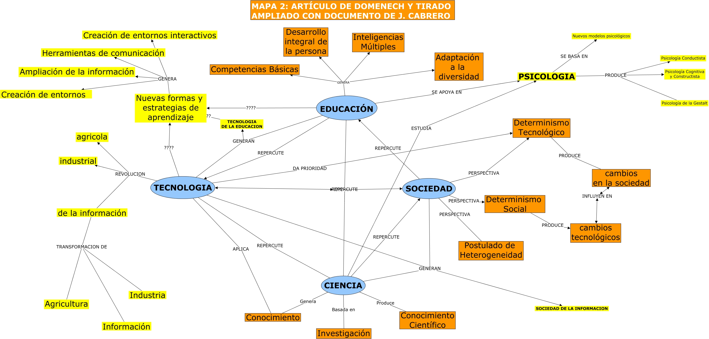 Este Cmap, tiene información relacionada con: Mapa2, Nuevas formas y estrategias de aprendizaje GENERA Herramientas de comunicación, TECNOLOGIA DE LA EDUCACION ???? Nuevas formas y estrategias de aprendizaje, PSICOLOGIA PRODUCE Psicología de la Gestalt, CIENCIA Basada en Investigación, TECNOLOGIA GENERAN TECNOLOGIA DE LA EDUCACION, EDUCACIÓN REPERCUTE CIENCIA, TECNOLOGIA GENERAN SOCIEDAD DE LA INFORMACION, Nuevas formas y estrategias de aprendizaje GENERA Creación de entornos interactivos, TECNOLOGIA REPERCUTE CIENCIA, EDUCACIÓN REPERCUTE TECNOLOGIA, EDUCACIÓN SE APOYA EN PSICOLOGIA, Nuevas formas y estrategias de aprendizaje GENERA Ampliación de la información, EDUCACIÓN GENERA Competencias Básicas, CIENCIA Produce Conocimiento Científico, cambios tecnológicos INFLUYEN EN cambios en la sociedad, PSICOLOGIA SE BASA EN Nuevos modelos psicológicos, TECNOLOGIA REVOLUCION industrial, EDUCACIÓN GENERA Adaptación a la diversidad, PSICOLOGIA PRODUCE Psicología Conductista, SOCIEDAD PERSPECTIVA Determinismo Tecnológico