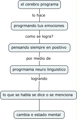 Este Cmap, tiene información relacionada con: el cerebro programa, pensando siempre en positivo por medio de progrmama neuro linguistico, progrmama neuro linguistico logrando lo que se habla se dice o se menciona, progrmando tus emociones como se logra? pensando siempre en positivo, el cerebro programa lo hace progrmando tus emociones, lo que se habla se dice o se menciona ???? cambia e estado mental