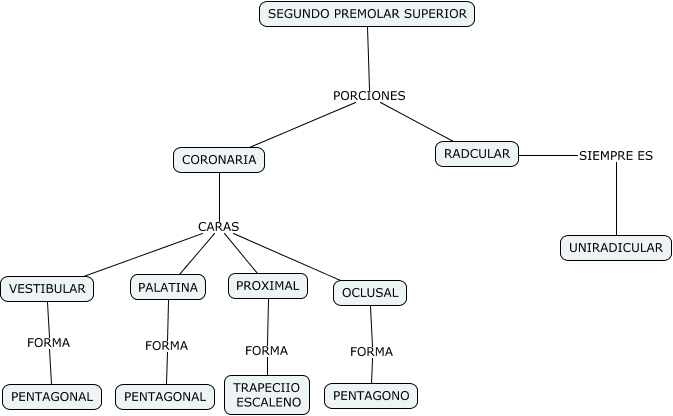 Este Cmap, tiene información relacionada con: SEGUNDO PREMOLAR SUPERIOR, OCLUSAL FORMA PENTAGONO, CORONARIA CARAS PROXIMAL, CORONARIA CARAS OCLUSAL, RADCULAR SIEMPRE ES UNIRADICULAR, CORONARIA CARAS PALATINA, SEGUNDO PREMOLAR SUPERIOR PORCIONES CORONARIA, SEGUNDO PREMOLAR SUPERIOR PORCIONES RADCULAR, CORONARIA CARAS VESTIBULAR, PALATINA FORMA PENTAGONAL, PROXIMAL FORMA TRAPECIIO ESCALENO, VESTIBULAR FORMA PENTAGONAL