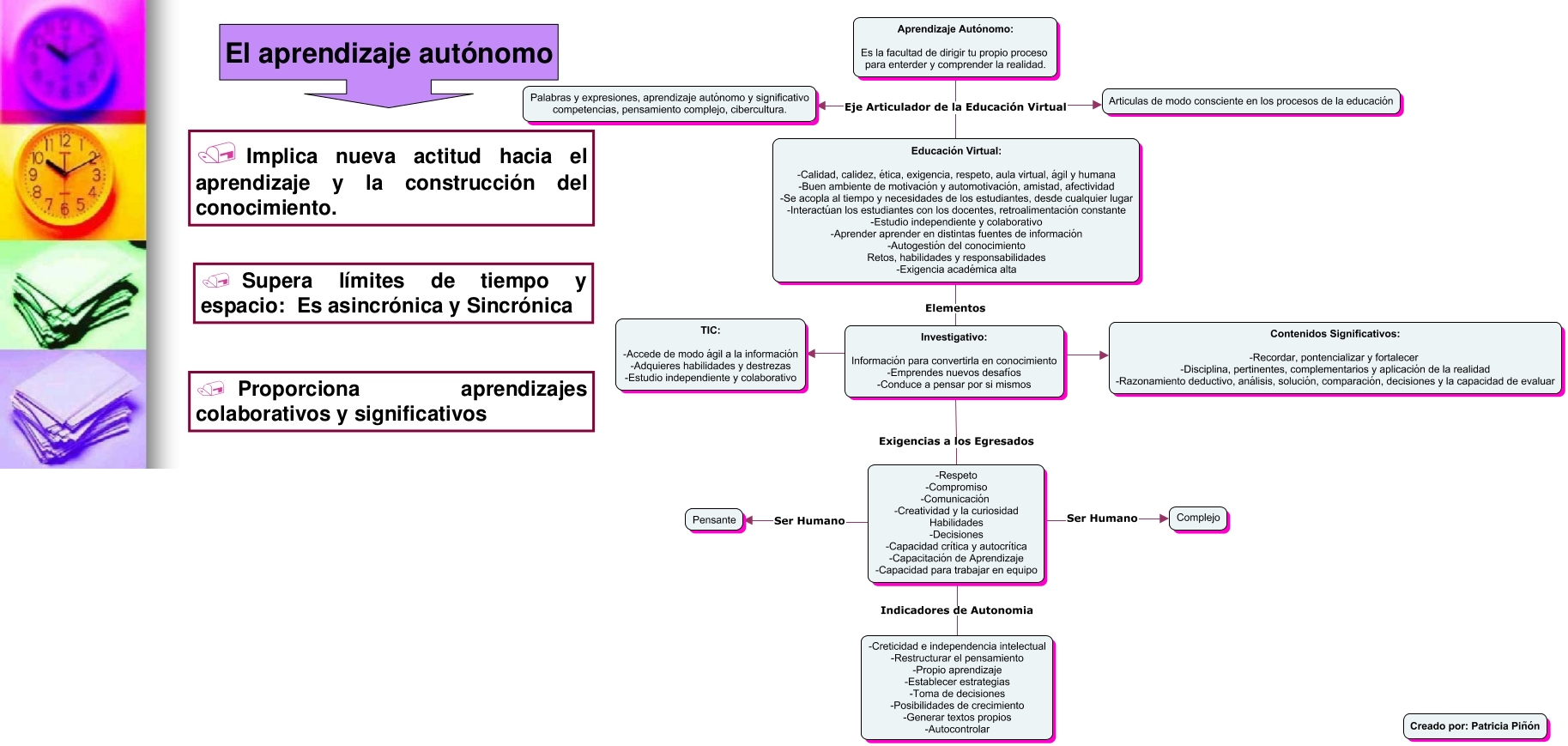 Este Cmap, tiene información relacionada con: Aprendizaje Autónomo, Aprendizaje Autónomo: Es la facultad de dirigir tu propio proceso para enterder y comprender la realidad. Eje Articulador de la Educación Virtual Articulas de modo consciente en los procesos de la educación, Investigativo: Información para convertirla en conocimiento -Emprendes nuevos desafíos -Conduce a pensar por si mismos ???? TIC: -Accede de modo ágil a la información -Adquieres habilidades y destrezas -Estudio independiente y colaborativo, Aprendizaje Autónomo: Es la facultad de dirigir tu propio proceso para enterder y comprender la realidad. Eje Articulador de la Educación Virtual Palabras y expresiones, aprendizaje autónomo y significativo competencias, pensamiento complejo, cibercultura., Aprendizaje Autónomo: Es la facultad de dirigir tu propio proceso para enterder y comprender la realidad. Eje Articulador de la Educación Virtual Educación Virtual: -Calidad, calidez, ética, exigencia, respeto, aula virtual, ágil y humana -Buen ambiente de motivación y automotivación, amistad, afectividad -Se acopla al tiempo y necesidades de los estudiantes, desde cualquier lugar -Interactúan los estudiantes con los docentes, retroalimentación constante -Estudio independiente y colaborativo -Aprender aprender en distintas fuentes de información -Autogestión del conocimiento Retos, habilidades y responsabilidades -Exigencia académica alta, -Respeto -Compromiso -Comunicación -Creatividad y la curiosidad Habilidades -Decisiones -Capacidad crítica y autocrítica -Capacitación de Aprendizaje -Capacidad para trabajar en equipo Indicadores de Autonomia -Creticidad e independencia intelectual -Restructurar el pensamiento -Propio aprendizaje -Establecer estrategias -Toma de decisiones -Posibilidades de crecimiento -Generar textos propios -Autocontrolar, Educación Virtual: -Calidad, calidez, ética, exigencia, respeto, aula virtual, ágil y humana -Buen ambiente de motivación y automotivación, amistad, afectividad -Se acopla al tiempo y necesidades de los estudiantes, desde cualquier lugar -Interactúan los estudiantes con los docentes, retroalimentación constante -Estudio independiente y colaborativo -Aprender aprender en distintas fuentes de información -Autogestión del conocimiento Retos, habilidades y responsabilidades -Exigencia académica alta Elementos Investigativo: Información para convertirla en conocimiento -Emprendes nuevos desafíos -Conduce a pensar por si mismos, -Respeto -Compromiso -Comunicación -Creatividad y la curiosidad Habilidades -Decisiones -Capacidad crítica y autocrítica -Capacitación de Aprendizaje -Capacidad para trabajar en equipo Ser Humano Complejo, -Respeto -Compromiso -Comunicación -Creatividad y la curiosidad Habilidades -Decisiones -Capacidad crítica y autocrítica -Capacitación de Aprendizaje -Capacidad para trabajar en equipo Ser Humano Pensante, Investigativo: Información para convertirla en conocimiento -Emprendes nuevos desafíos -Conduce a pensar por si mismos ???? Contenidos Significativos: -Recordar, pontencializar y fortalecer -Disciplina, pertinentes, complementarios y aplicación de la realidad -Razonamiento deductivo, análisis, solución, comparación, decisiones y la capacidad de evaluar, Investigativo: Información para convertirla en conocimiento -Emprendes nuevos desafíos -Conduce a pensar por si mismos Exigencias a los Egresados -Respeto -Compromiso -Comunicación -Creatividad y la curiosidad Habilidades -Decisiones -Capacidad crítica y autocrítica -Capacitación de Aprendizaje -Capacidad para trabajar en equipo