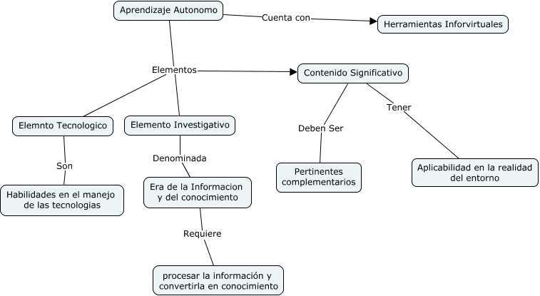 This Concept Map, created with IHMC CmapTools, has information related to: ELIZABETHCMAPPPPPPPPPPPP, Era de la Informacion y del conocimiento Requiere procesar la información y convertirla en conocimiento, Aprendizaje Autonomo Cuenta con Herramientas Inforvirtuales, Contenido Significativo Tener Aplicabilidad en la realidad del entorno, Aprendizaje Autonomo Elementos Elemnto Tecnologico, Contenido Significativo Deben Ser Pertinentes complementarios, Aprendizaje Autonomo Elementos Elemento Investigativo, Elemento Investigativo Denominada Era de la Informacion y del conocimiento, Elemnto Tecnologico Son Habilidades en el manejo de las tecnologias, Aprendizaje Autonomo Elementos Contenido Significativo
