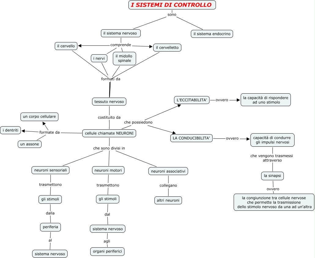 Questa Cmap, creata con IHMC CmapTools, contiene informazioni relative a: i sistemi di controllo, neuroni sensoriali trasmettono gli stimoli, cellule chiamate NEURONI che sono divisi in neuroni associativi, il sistema nervoso comprende il midollo spinale, il cervello tessuto nervoso, i nervi tessuto nervoso, cellule chiamate NEURONI formate da un corpo cellulare, il midollo spinale formati da tessuto nervoso, sistema nervoso agli organi periferici, L'ECCITABILITA' ovvero la capacità di rispondere ad uno stimolo, neuroni associativi collegano altri neuroni, tessuto nervoso costituito da cellule chiamate NEURONI, capacità di condurre gli impulsi nervosi che vengono trasmessi attraverso la sinapsi, cellule chiamate NEURONI formate da un assone, la sinapsi ovvero la congiunzione tra cellule nervose che permette la trasmissione dello stimolo nervoso da una ad un'altra, il sistema nervoso comprende il cervelletto, cellule chiamate NEURONI formate da i dentriti, cellule chiamate NEURONI che possiedono L'ECCITABILITA', il sistema nervoso comprende i nervi, cellule chiamate NEURONI che sono divisi in neuroni motori, gli stimoli dal sistema nervoso