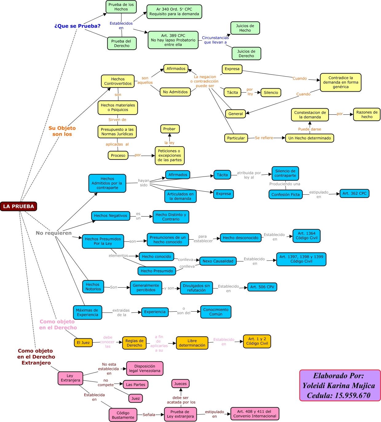 Este Cmap, tiene información relacionada con: Mapa Conceptual La Prueba, LA PRUEBA No requieren Máximas de Experiencia, Prueba de los Hechos Establecidos en Art. 389 CPC No hay lapso Probatorio entre ella, Hechos Controvertidos son aquellos No Admitidos, LA PRUEBA Como objeto en el Derecho Extranjero Ley Extranjera, Reglas de Derecho a fin de aplicarlas a su Libre determinación, Expresa La negacion o contradicción puede ser Particular, Hechos materiales o Psiquicos Sirven de Presupuesto a las Normas Jurídicas, Ley Extranjera No esta establecida en Disposición legal Venezolana, Prueba de Ley extranjera debe ser acatada por los Jueces, Proceso por Peticiones o excepciones de las partes, Ley Extranjera no compete Las Partes, Prueba de los Hechos Establecidos en Ar 340 Ord. 5° CPC Requisito para la demanda, Prueba de Ley extranjera estipulado en Art. 408 y 411 del Convenio Internacional, El Juez debe conocer las Reglas de Derecho, Máximas de Experiencia extraidas de la Experiencia, Tácita por ley Silencio, Prueba de los Hechos Establecidos en Prueba del Derecho, Hecho desconocido Establecido en Art. 1364 Código Civil, LA PRUEBA No requieren Hechos Admitidos por la contraparte, Hechos Admitidos por la contraparte hayan sido Expresa