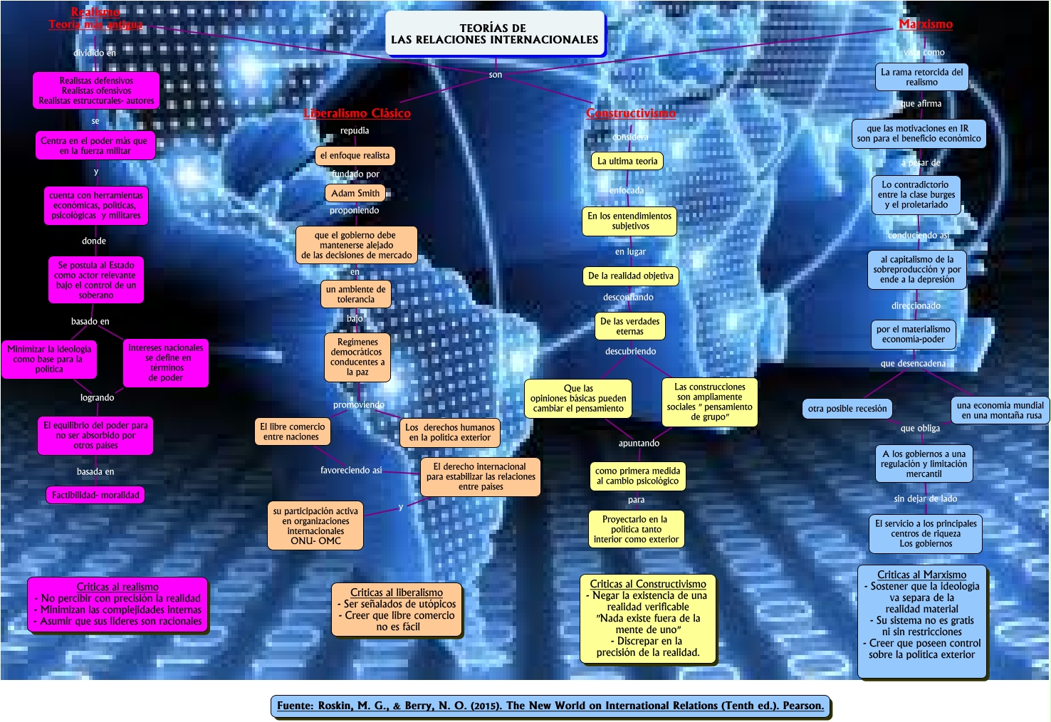 Este Cmap, tiene información relacionada con: Teorìa de las Relaciones Internacionales, A los gobiernos a una regulación y limitación mercantil sin dejar de lado El servicio a los principales centros de riqueza Los gobiernos, TEORÍAS DE LAS RELACIONES INTERNACIONALES son Marxismo, Realistas defensivos Realistas ofensivos Realistas estructurales- autores se Centra en el poder más que en la fuerza militar, El libre comercio entre naciones favoreciendo así El derecho internacional para estabilizar las relaciones entre países, como primera medida al cambio psicológico para Proyectarlo en la política tanto interior como exterior, De las verdades eternas descubriendo Que las opiniones básicas pueden cambiar el pensamiento, Las construcciones son ampliamente sociales " pensamiento de grupo" apuntando como primera medida al cambio psicológico, Adam Smith proponiendo que el gobierno debe mantenerse alejado de las decisiones de mercado, que el gobierno debe mantenerse alejado de las decisiones de mercado en un ambiente de tolerancia, Se postula al Estado como actor relevante bajo el control de un soberano basado en Minimizar la ideología como base para la política, La ultima teoría enfocada En los entendimientos subjetivos, al capitalismo de la sobreproducción y por ende a la depresión direccionado por el materialismo economía-poder, TEORÍAS DE LAS RELACIONES INTERNACIONALES son Realismo Teorìa màs antigua, el enfoque realista fundado por Adam Smith, por el materialismo economía-poder que desencadena otra posible recesión, De las verdades eternas descubriendo Las construcciones son ampliamente sociales " pensamiento de grupo", Realismo Teorìa màs antigua dividido en Realistas defensivos Realistas ofensivos Realistas estructurales- autores, Minimizar la ideología como base para la política logrando El equilibrio del poder para no ser absorbido por otros países, Que las opiniones básicas pueden cambiar el pensamiento apuntando como primera medida al cambio psicológico, Liberalismo Clásico repudia el enfoque realista