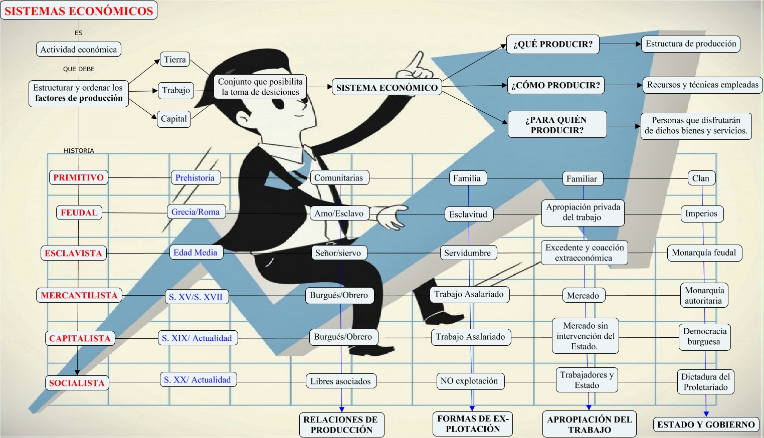 Este Cmap, tiene información relacionada con: SISTEMAS ECONOMICOS, ¿PARA QUIÉN PRODUCIR? ???? Personas que disfrutarán de dichos bienes y servicios., MERCANTILISTA ???? Monarquía autoritaria, Familia ???? FORMAS DE EX- PLOTACIÓN, Conjunto que posibilita la toma de desiciones ???? SISTEMA ECONÓMICO, Clan ???? ESTADO Y GOBIERNO, Familiar ???? APROPIACIÓN DEL TRABAJO, ¿QUÉ PRODUCIR? ???? Estructura de producción, ¿CÓMO PRODUCIR? ???? Recursos y técnicas empleadas, Conjunto que posibilita la toma de desiciones ???? Trabajo, Conjunto que posibilita la toma de desiciones ???? Tierra, SOCIALISTA ???? Dictadura del Proletariado, CAPITALISTA ???? Democracia burguesa, SISTEMA ECONÓMICO ???? ¿PARA QUIÉN PRODUCIR?, Comunitarias ???? RELACIONES DE PRODUCCIÓN, SISTEMA ECONÓMICO ???? ¿QUÉ PRODUCIR?, Estructurar y ordenar los factores de producción ???? Trabajo, PRIMITIVO ???? Clan, SISTEMAS ECONÓMICOS ES Actividad económica, ESCLAVISTA ???? Monarquía feudal, FEUDAL ???? Imperios