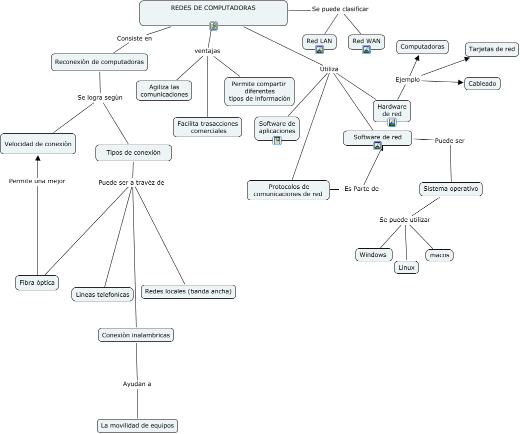 Este Cmap, tiene información relacionada con: Manuela Lòpez Tecnologia, Hardware de red Ejemplo Computadoras, Protocolos de comunicaciones de red Es Parte de ????, REDES DE COMPUTADORAS Utiliza Protocolos de comunicaciones de red, Tipos de conexiòn Puede ser a travèz de Conexiòn inalambricas, Sistema operativo Se puede utilizar macos, REDES DE COMPUTADORAS ventajas Agiliza las comunicaciones, Conexiòn inalambricas Ayudan a La movilidad de equipos, REDES DE COMPUTADORAS Utiliza Software de red, Tipos de conexiòn Puede ser a travèz de Redes locales (banda ancha), Hardware de red Ejemplo Cableado, Tipos de conexiòn Puede ser a travèz de Lìneas telefonicas, Fibra òptica Permite una mejor Velocidad de conexiòn, Sistema operativo Se puede utilizar Linux, REDES DE COMPUTADORAS ventajas Permite compartir diferentes tipos de informaciòn, Tipos de conexiòn Puede ser a travèz de Fibra òptica, REDES DE COMPUTADORAS Utiliza Software de aplicaciones, Sistema operativo Se puede utilizar Windows, REDES DE COMPUTADORAS ventajas Facilita trasacciones comerciales, REDES DE COMPUTADORAS Se puede clasificar Red LAN, REDES DE COMPUTADORAS Consiste en Reconexiòn de computadoras