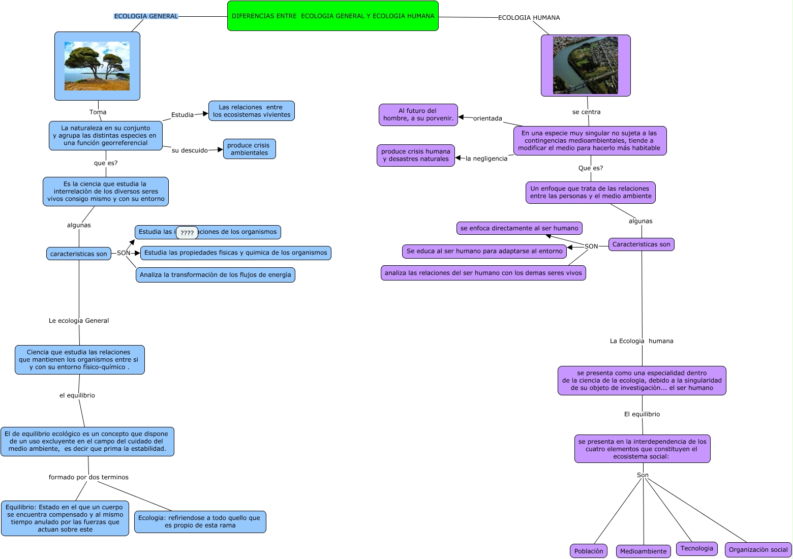 Este Cmap, tiene información relacionada con: DIFERENCIAS ENTRE ECOLOGIA GENERAL Y ECOLOGIA HUMANA, El de equilibrio ecológico es un concepto que dispone de un uso excluyente en el campo del cuidado del medio ambiente, es decir que prima la estabilidad. formado por dos terminos Equilibrio: Estado en el que un cuerpo se encuentra compensado y al mismo tiempo anulado por las fuerzas que actuan sobre este, Caracteristicas son SON ????, se presenta como una especialidad dentro de la ciencia de la ecologia, debido a la singularidad de su objeto de investigaciòn... el ser humano El equilibrio se presenta en la interdependencia de los cuatro elementos que constituyen el ecosistema social:, DIFERENCIAS ENTRE ECOLOGIA GENERAL Y ECOLOGIA HUMANA ECOLOGIA HUMANA ????, ???? Toma La naturaleza en su conjunto y agrupa las distintas especies en una función georreferencial, El de equilibrio ecológico es un concepto que dispone de un uso excluyente en el campo del cuidado del medio ambiente, es decir que prima la estabilidad. formado por dos terminos Ecologia: refiriendose a todo quello que es propio de esta rama, En una especie muy singular no sujeta a las contingencias medioambientales, tiende a modificar el medio para hacerlo más habitable Que es? Un enfoque que trata de las relaciones entre las personas y el medio ambiente, Caracteristicas son SON Se educa al ser humano para adaptarse al entorno, En una especie muy singular no sujeta a las contingencias medioambientales, tiende a modificar el medio para hacerlo más habitable orientada Al futuro del hombre, a su porvenir., La naturaleza en su conjunto y agrupa las distintas especies en una función georreferencial su descuido produce crisis ambientales, caracteristicas son SON Estudia las interrelaciones de los organismos, Un enfoque que trata de las relaciones entre las personas y el medio ambiente algunas Caracteristicas son, Caracteristicas son SON se enfoca directamente al ser humano, Es la ciencia que estudia la interrelaciòn de los diversos seres vivos consigo mismo y con su entorno algunas caracteristicas son, caracteristicas son SON Analiza la transformaciòn de los flujos de energìa, La naturaleza en su conjunto y agrupa las distintas especies en una función georreferencial que es? Es la ciencia que estudia la interrelaciòn de los diversos seres vivos consigo mismo y con su entorno, se presenta en la interdependencia de los cuatro elementos que constituyen el ecosistema social: Son Tecnologia, DIFERENCIAS ENTRE ECOLOGIA GENERAL Y ECOLOGIA HUMANA ECOLOGIA GENERAL ????, Caracteristicas son La Ecologia humana se presenta como una especialidad dentro de la ciencia de la ecologia, debido a la singularidad de su objeto de investigaciòn... el ser humano, se presenta en la interdependencia de los cuatro elementos que constituyen el ecosistema social: Son Organizaciòn social