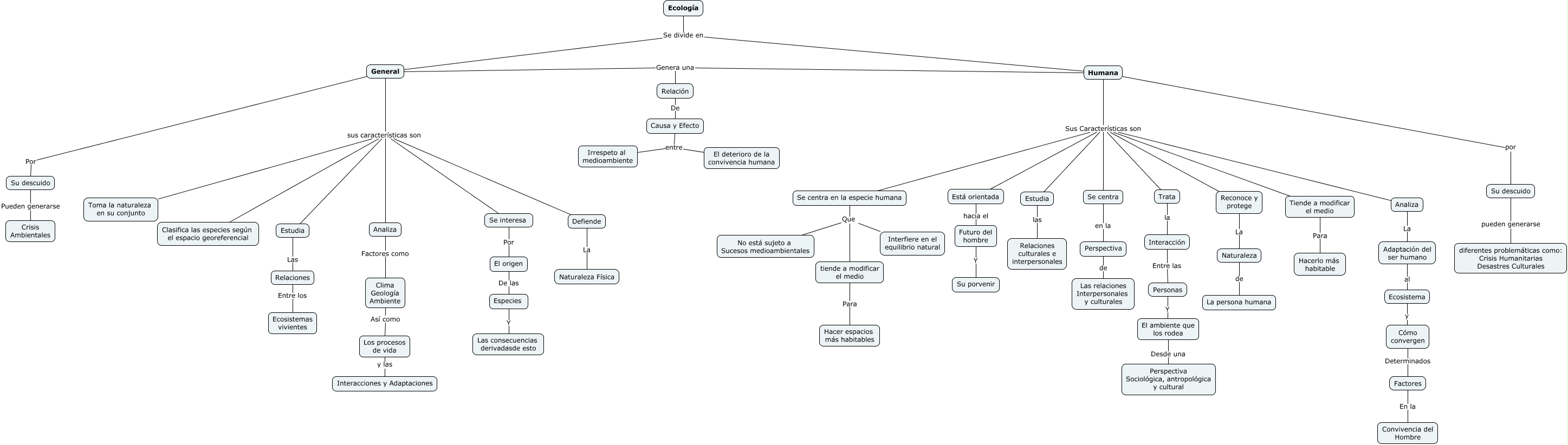 Este Cmap, tiene información relacionada con: Ecología Humana Vs General, General sus características son Estudia, Adaptación del ser humano al Ecosistema, Perspectiva de Las relaciones Interpersonales y culturales, General sus características son Clasifica las especies según el espacio georeferencial, Humana Sus Características son Trata, tiende a modificar el medio Para Hacer espacios más habitables, Estudia las Relaciones culturales e interpersonales, Estudia Las Relaciones, General sus características son Defiende, Clima Geología Ambiente Así como Los procesos de vida, Ecología Se divide en General, Humana Sus Características son Está orientada, General sus características son Se interesa, Relaciones Entre los Ecosistemas vivientes, Se centra en la especie humana Que No está sujeto a Sucesos medioambientales, Interacción Entre las Personas, Ecosistema y Cómo convergen, Los procesos de vida y las Interacciones y Adaptaciones, Naturaleza de La persona humana, Humana Sus Características son Estudia