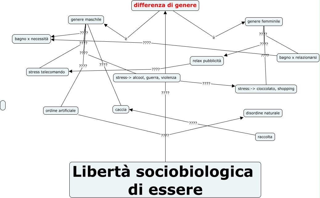 Questa Cmap, creata con IHMC CmapTools, contiene informazioni relative a: gruppo 6, genere maschile ???? bagno x necessità, bagno x relazionarsi ???? bagno x necessità, differenza di genere è genere femminile, genere maschile ???? caccia, genere femminile ???? relax pubblicità, genere maschile ???? stress telecomando, genere femminile ???? stress:-> cioccolato, shopping, ordine artificiale ???? disordine naturale, relax pubblicità ???? stress telecomando, genere maschile ???? ordine artificiale, stress-> alcool, guerra, violenza ???? stress:-> cioccolato, shopping, Libertà sociobiologica di essere ???? differenza di genere, genere femminile ???? bagno x relazionarsi, differenza di genere è genere maschile, genere maschile ???? stress-> alcool, guerra, violenza, raccolta ???? caccia