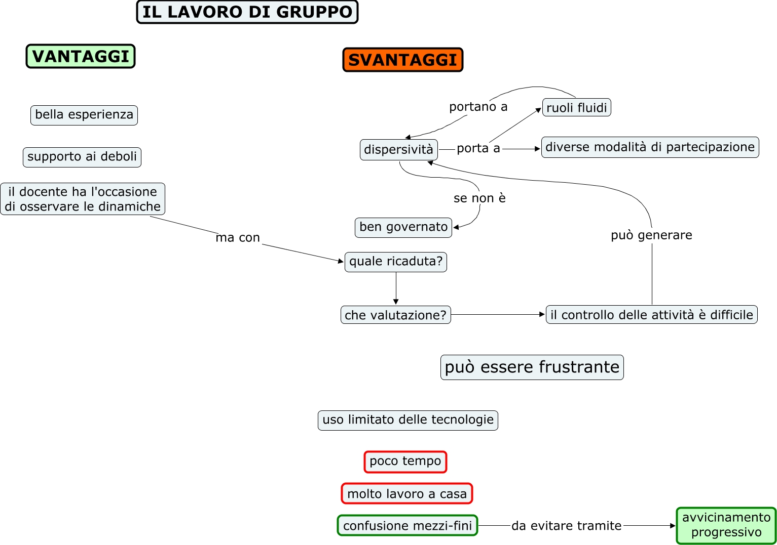 Questa Cmap, creata con IHMC CmapTools, contiene informazioni relative a: CORSO SPAZI FLESSIBILI_raccolta aspettative_1_2, ruoli fluidi portano a dispersività, che valutazione? ???? il controllo delle attività è difficile, dispersività porta a ruoli fluidi, il docente ha l'occasione di osservare le dinamiche ma con quale ricaduta?, dispersività se non è ben governato, confusione mezzi-fini da evitare tramite avvicinamento progressivo, il controllo delle attività è difficile può generare dispersività, dispersività porta a diverse modalità di partecipazione, quale ricaduta? ???? che valutazione?