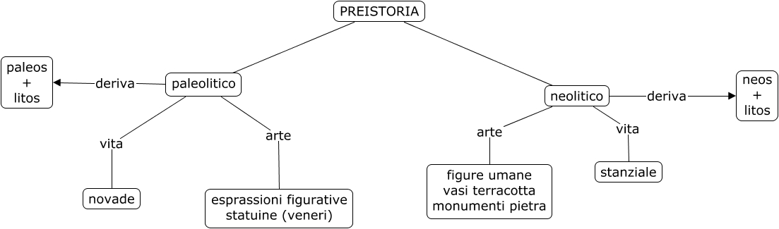 Questa Cmap, creata con IHMC CmapTools, contiene informazioni relative a: PREISTORIA, paleolitico deriva paleos + litos, paleolitico arte esprassioni figurative statuine (veneri), PREISTORIA neolitico, PREISTORIA paleolitico, paleolitico vita novade, neolitico arte figure umane vasi terracotta monumenti pietra, neolitico deriva neos + litos, neolitico vita stanziale