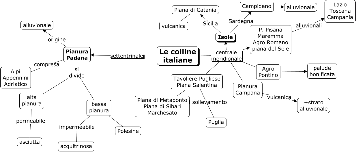 Questa Cmap, creata con IHMC CmapTools, contiene informazioni relative a: Le colline italiane, Pianura Padana origine alluvionale, Pianura Padana compresa Alpi Appennini Adriatico, bassa pianura impermeabile acquitrinosa, Isole Sardegna Campidano, Le colline italiane centrale meridionale Pianura Campana, Le colline italiane centrale meridionale Tavoliere Pugliese Piana Salentina, bassa pianura Polesine, Le colline italiane centrale meridionale Agro Pontino, Le colline italiane centrale meridionale Isole, Tavoliere Pugliese Piana Salentina Piana di Metaponto Piana di Sibari Marchesato, alta pianura permeabile asciutta, Tavoliere Pugliese Piana Salentina di sollevamento Puglia, Pianura Padana si divide alta pianura, P. Pisana Maremma Agro Romano piana del Sele alluvionali Lazio Toscana Campania, Isole Sicilia Piana di Catania, Le colline italiane settentrinale Pianura Padana, Pianura Padana si divide bassa pianura, Le colline italiane centrale meridionale P. Pisana Maremma Agro Romano piana del Sele, Campidano alluvionale, Piana di Catania vulcanica