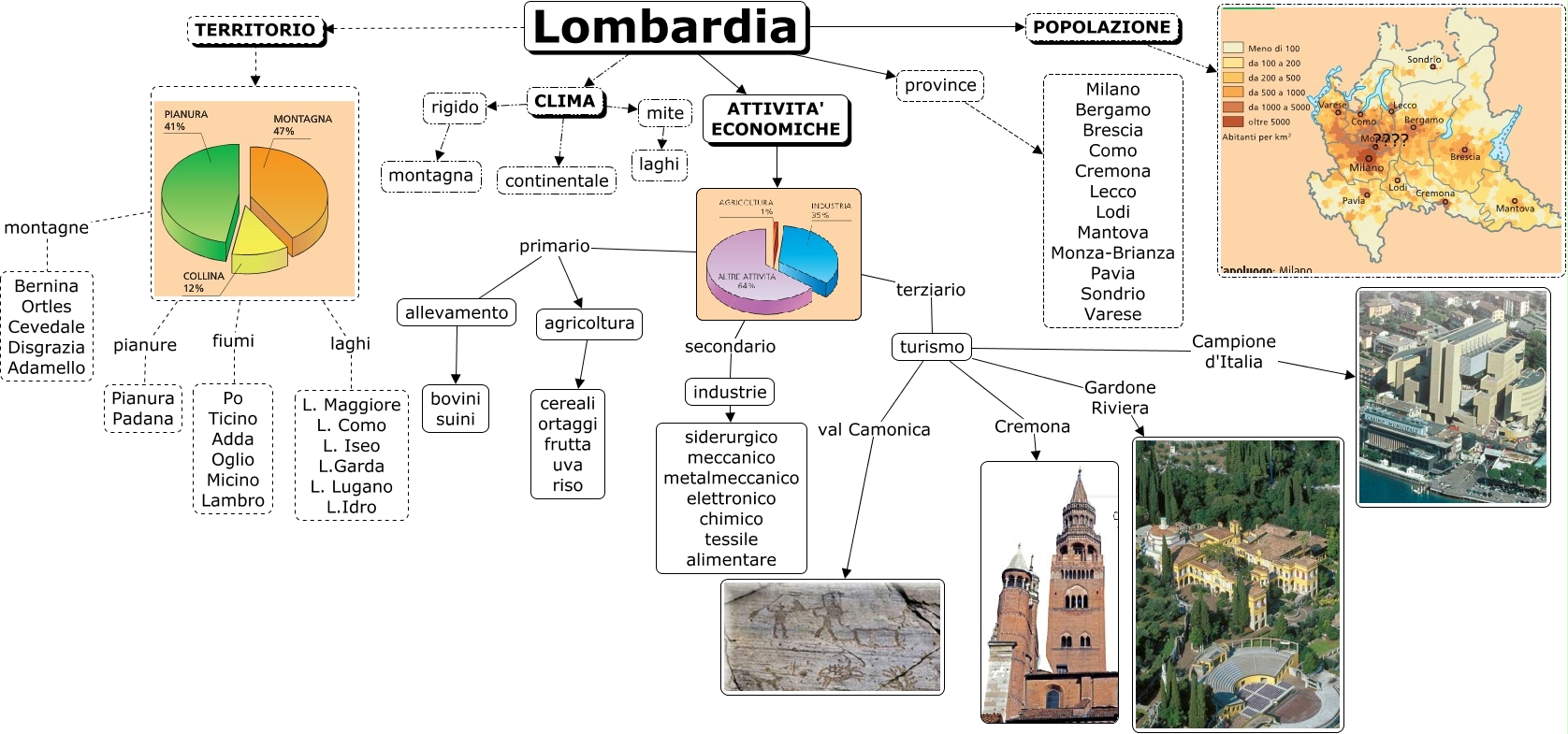 Questa Cmap, creata con IHMC CmapTools, contiene informazioni relative a: Lombardia, Lombardia ATTIVITA' ECONOMICHE, Lombardia POPOLAZIONE, mite laghi, turismo Campione d'Italia, primario agricoltura, Lombardia TERRITORIO, turismo val Camonica, turismo Gardone Riviera, secondario industrie, industrie siderurgico meccanico metalmeccanico elettronico chimico tessile alimentare, turismo Cremona, CLIMA mite, rigido montagna, province Milano Bergamo Brescia Como Cremona Lecco Lodi Mantova Monza-Brianza Pavia Sondrio Varese, montagne Bernina Ortles Cevedale Disgrazia Adamello, fiumi Po Ticino Adda Oglio Micino Lambro, laghi L. Maggiore L. Como L. Iseo L.Garda L. Lugano L.Idro, Lombardia CLIMA, TERRITORIO, CLIMA rigido