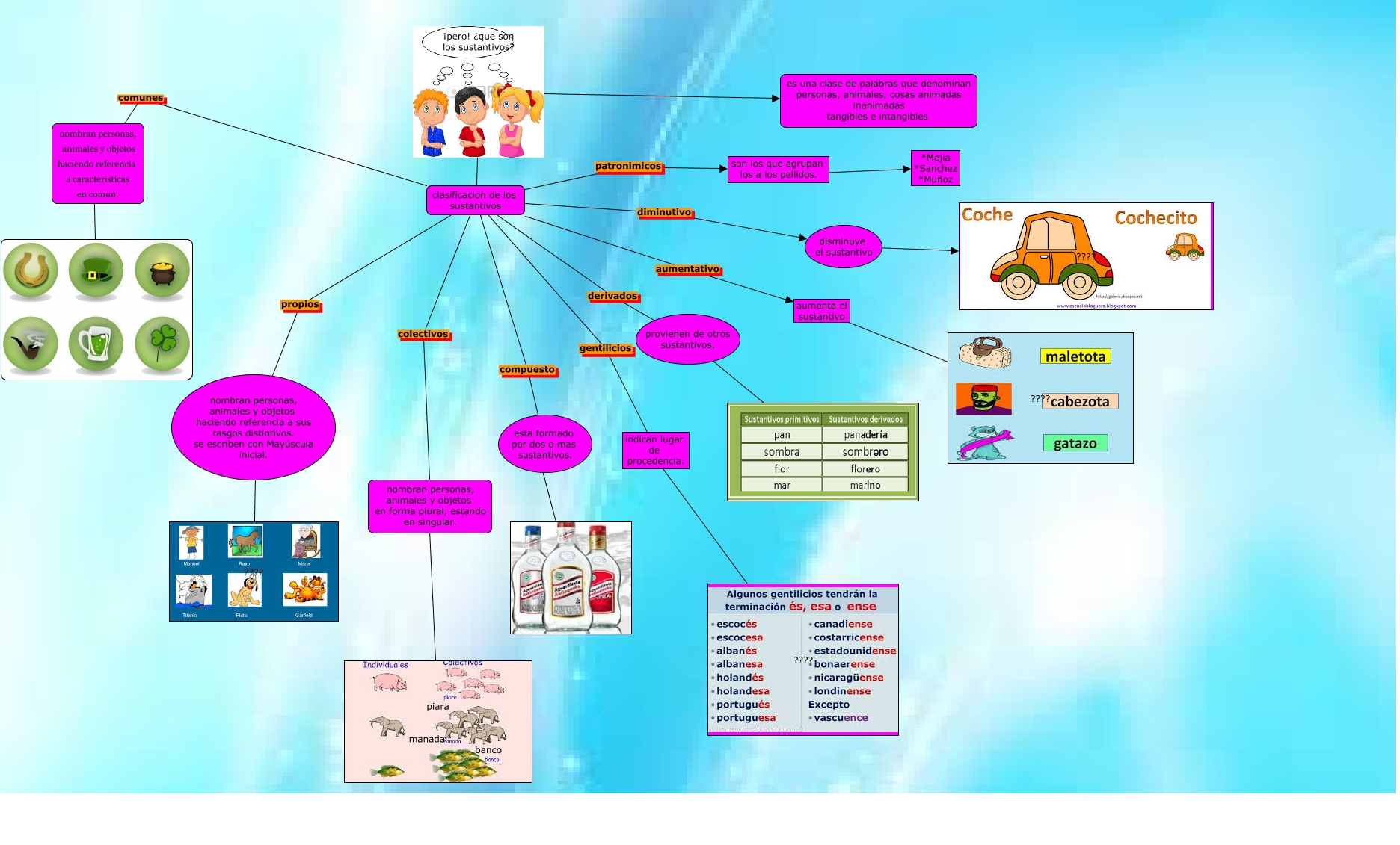 Este Cmap, tiene información relacionada con: clasificación de los sustantivos, aumenta el sustantivo ???? ????, clasificacion de los sustantivos propios nombran personas, animales y objetos haciendo referencia a sus rasgos distintivos. se escriben con Mayúscula inicial., clasificacion de los sustantivos colectivos nombran personas, animales y objetos en forma plural, estando en singular., son los que agrupan los a los pellidos. ???? *Mejia *Sanchez *Muñoz, disminuye el sustantivo ???? ????, clasificacion de los sustantivos gentilicios indican lugar de procedencia., nombran personas, animales y objetos haciendo referencia a sus rasgos distintivos. se escriben con Mayúscula inicial. ???? ????, clasificacion de los sustantivos ¡pero! ¿que son los sustantivos? es una clase de palabras que denominan personas, animales, cosas animadas inanimadas tangibles e intangibles, clasificacion de los sustantivos diminutivo disminuye el sustantivo, indican lugar de procedencia. ???? ????, provienen de otros sustantivos. ????, clasificacion de los sustantivos comunes nombran personas, animales y objetos haciendo referencia a caracteristicas en comun., clasificacion de los sustantivos patronimicos son los que agrupan los a los pellidos., nombran personas, animales y objetos en forma plural, estando en singular. ???? piara manada banco, esta formado por dos o mas sustantivos. ????, clasificacion de los sustantivos aumentativo aumenta el sustantivo, clasificacion de los sustantivos compuesto esta formado por dos o mas sustantivos., nombran personas, animales y objetos haciendo referencia a caracteristicas en comun. ????, clasificacion de los sustantivos derivados provienen de otros sustantivos.