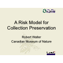 100 Year Flood.url Agents of Deterioration.url Checklist Manifesto.url Course outlines.cmap CPRAM.url Effective Preservation From Reaction to Prevention.url Finding information about risks to your collection.docx General outline for three courses.cmap Global Catastrophic Risks.url Loss of unique label data (2).alias PH manual - SI 2015 March FINAL .docx Professor Risk.url Public Safety Canada.url RAPT.url REPP_Risk_Prioritization_Worksheet - revised for collection vulnerability (1).xls Richter vs Mercalli.url Risk matrix video.url Risks.url Risks are departures.url Risky Business.url SMART.url Storm wind Safir-Simpson Scale.url TED Goals.url Temblor.url Torino Scale.url Waller 2002 - A risk model for preventive conservation .pdf Waller 2002 A risk model icom13_102.pdf